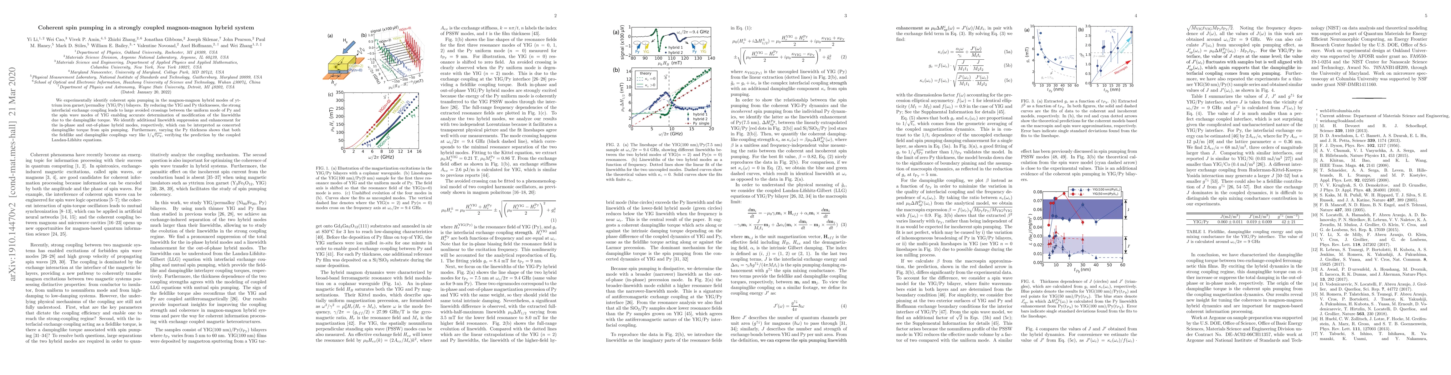 This paper experimentally identifies coherent spin pumping in magnon-magnon hybrid modes in Py/YIG bilayers, observing an "avoided crossing" due to fieldlike interfacial exchange coupling and predicting the inverse proportionality of spin pumping torques to the square root of Py thickness.