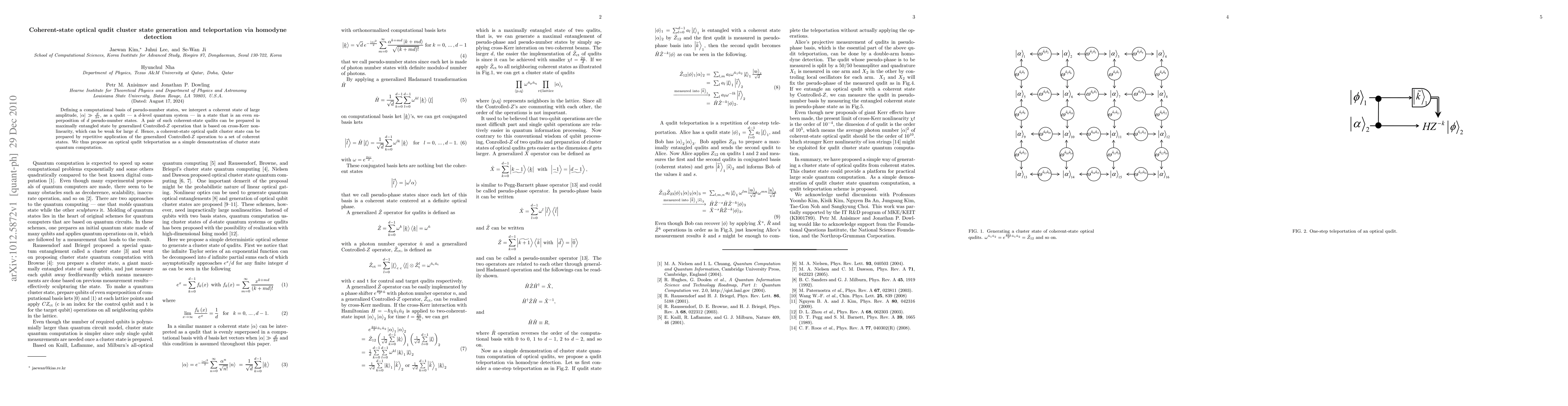 This paper proposes a method for generating coherent-state optical qudit cluster states using homodyne detection and cross-Kerr nonlinearity, and demonstrates optical qudit teleportation as a practical application of cluster state quantum computation. The approach involves entangling pairs of coherent-state qudits through a generalized Controlled-$Z$ operation.
