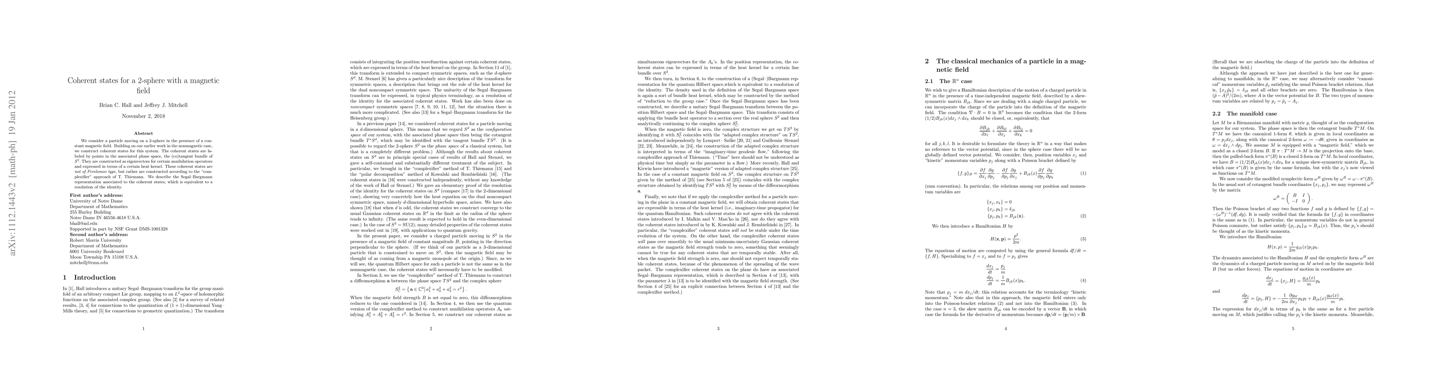 We consider a particle moving on a 2-sphere in the presence of a constant magnetic field. Building on earlier work in the nonmagnetic case, we construct coherent states for this system. The coherent states are labeled by points in the associated phase space, the (co)tangent bundle of S^2. They are constructed as eigenvectors for certain annihilation operators and expressed in terms of a certain heat kernel. These coherent states are not of Perelomov type, but rather are constructed according to the "complexifier" approach of T. Thiemann. We describe the Segal--Bargmann representation associated to the coherent states, which is equivalent to a resolution of the identity.