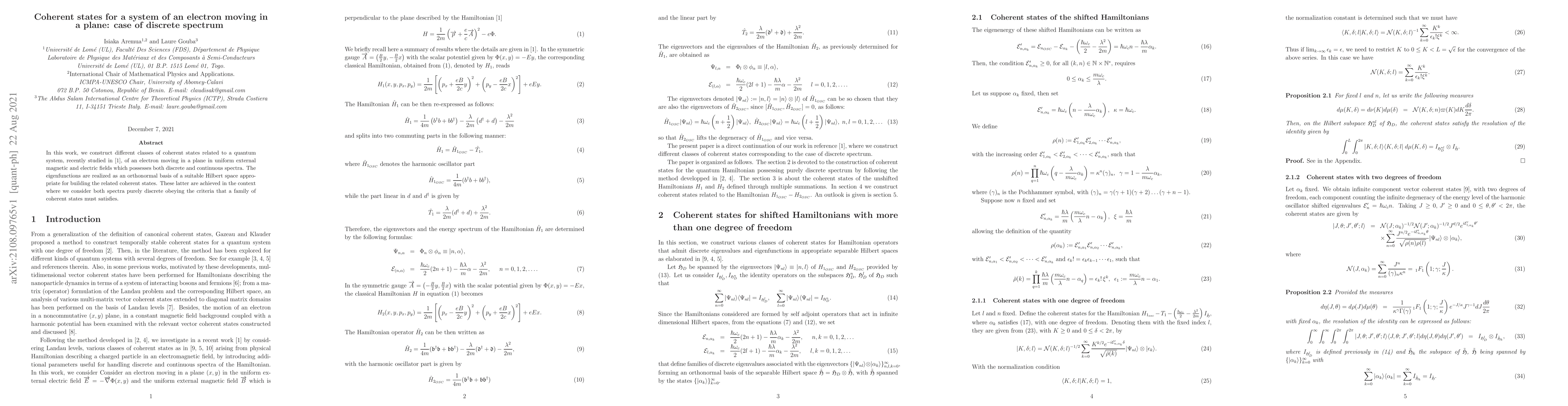 This paper constructs various coherent states for a quantum system of an electron in a plane under uniform magnetic and electric fields, focusing on the discrete spectrum. The eigenfunctions serve as an orthonormal basis for the Hilbert space, enabling the development of coherent states that meet the necessary criteria.