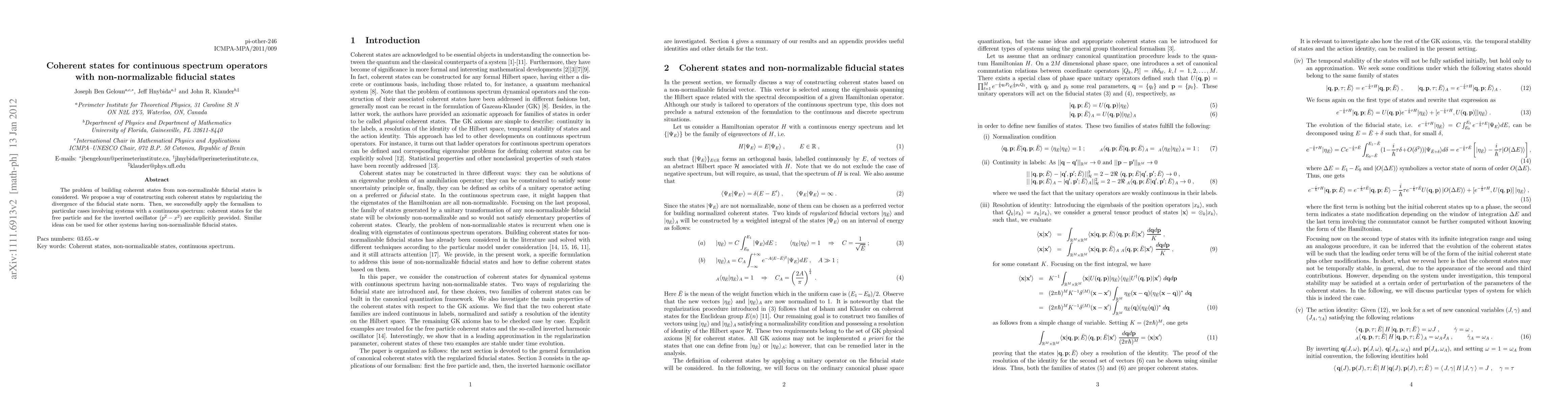 This paper proposes a method for constructing coherent states from non-normalizable fiducial states by regularizing the divergence of the fiducial state norm. It applies this formalism to systems with continuous spectra, providing explicit examples for the free particle and the inverted oscillator.