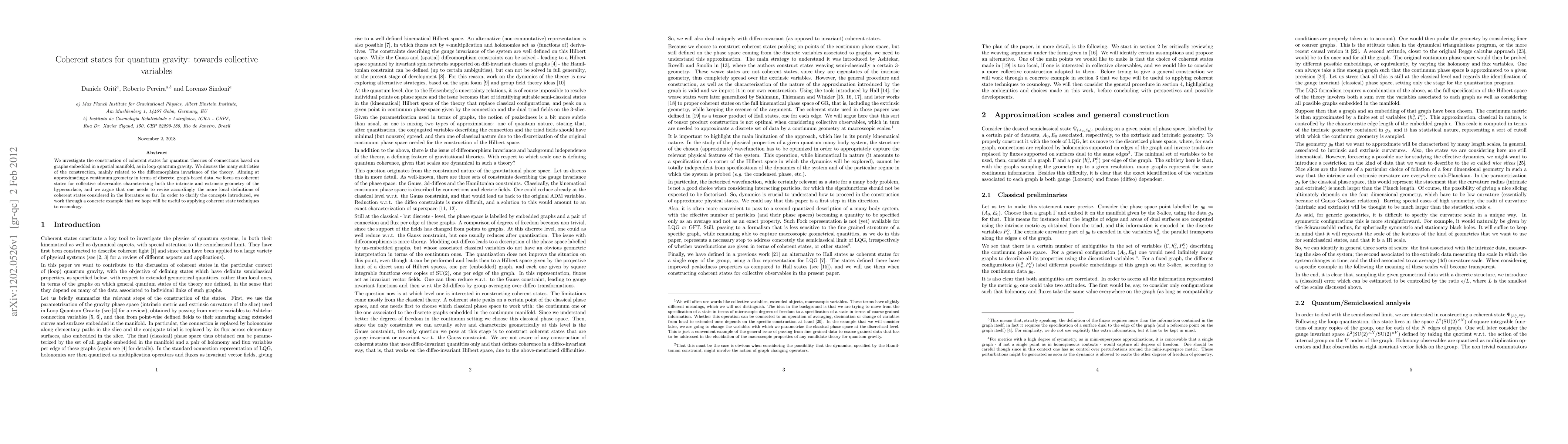 This paper explores constructing coherent states for quantum gravity theories, specifically loop quantum gravity, by focusing on graph-based connections in spatial manifolds. It addresses the challenges of diffeomorphism invariance and proposes a revision of local coherent state definitions to accommodate collective variables for intrinsic and extrinsic geometry.