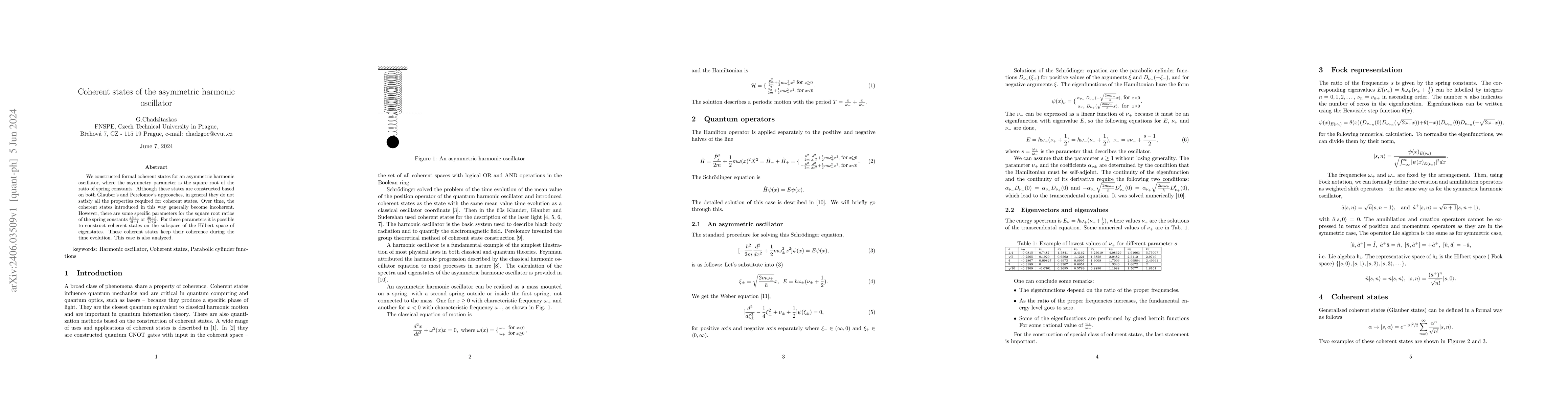 This paper constructs formal coherent states for an asymmetric harmonic oscillator and explores their properties. Although the general states become incoherent over time, specific parameter ratios of spring constants allow for the construction of coherent states that retain coherence, analyzed in detail for these special cases.