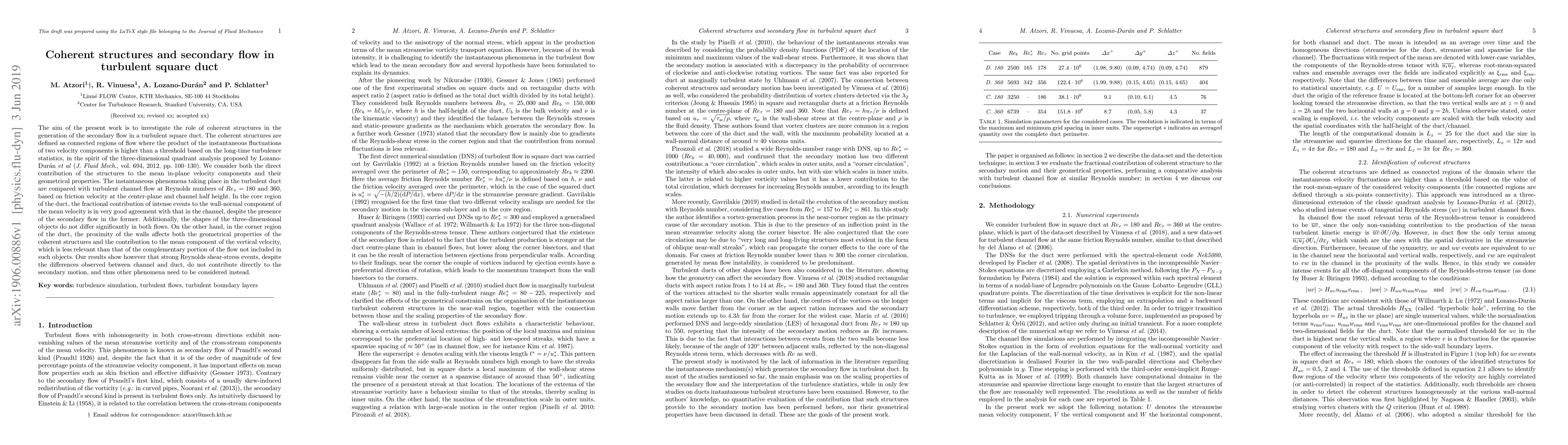 This study investigates coherent structures' role in generating secondary flow in turbulent square duct flow, comparing it to turbulent channel flow. It finds that intense events significantly contribute to the wall-normal mean velocity in the duct core, similar to channels, but their influence varies in the duct's corner region due to wall proximity, while not directly contributing to secondary flow.