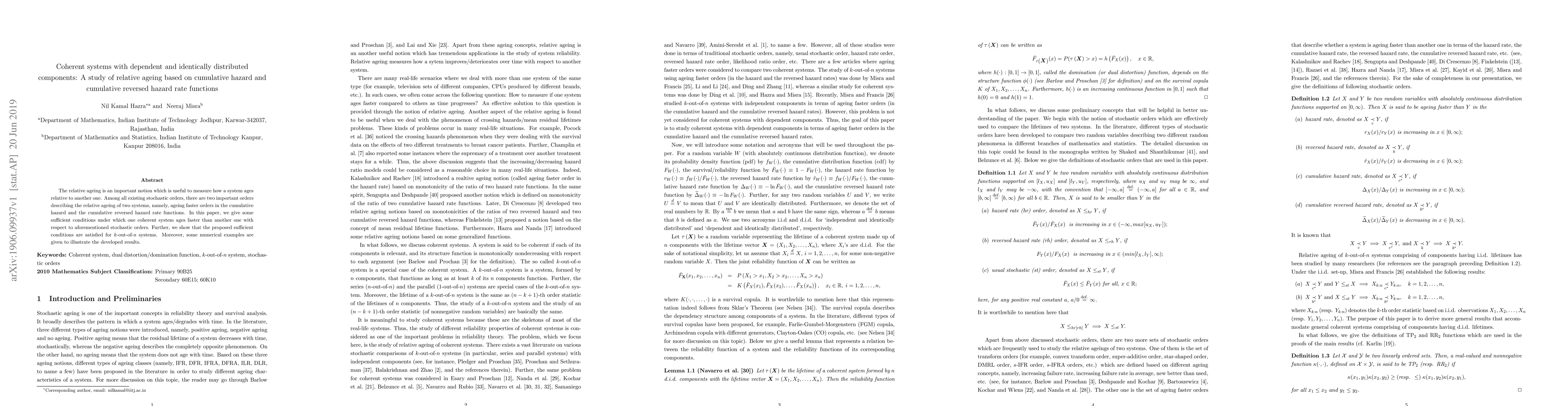 This paper explores relative ageing in coherent systems using cumulative hazard and cumulative reversed hazard rate functions, providing sufficient conditions for one system to age faster than another. It demonstrates these conditions apply to $k$-out-of-$n$ systems and includes numerical examples to illustrate the findings.