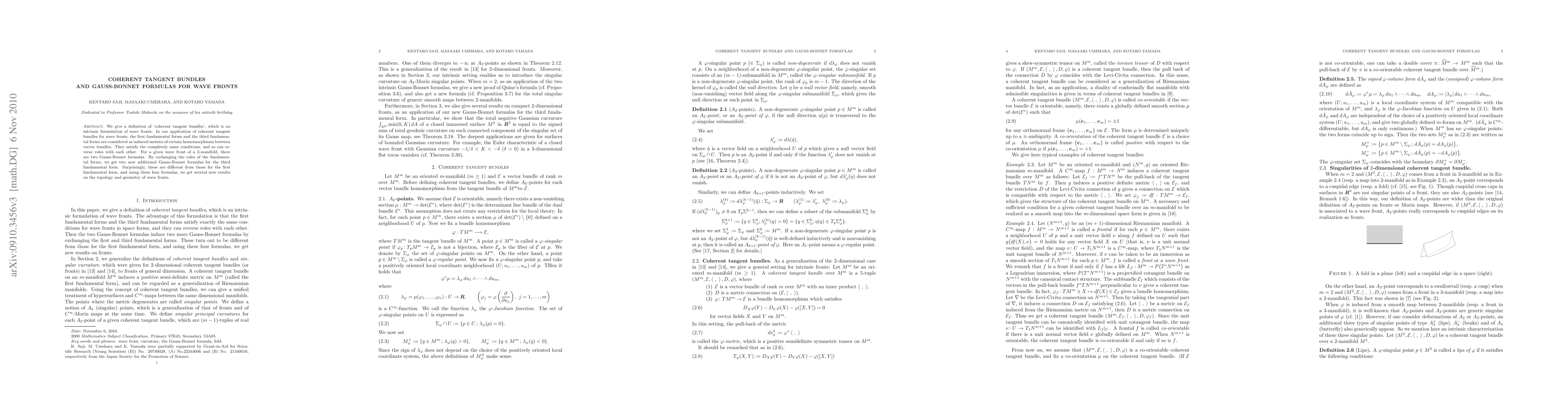 The paper defines coherent tangent bundles and establishes Gauss-Bonnet formulas for wave fronts, introducing new methods to analyze singularities in differential geometry.