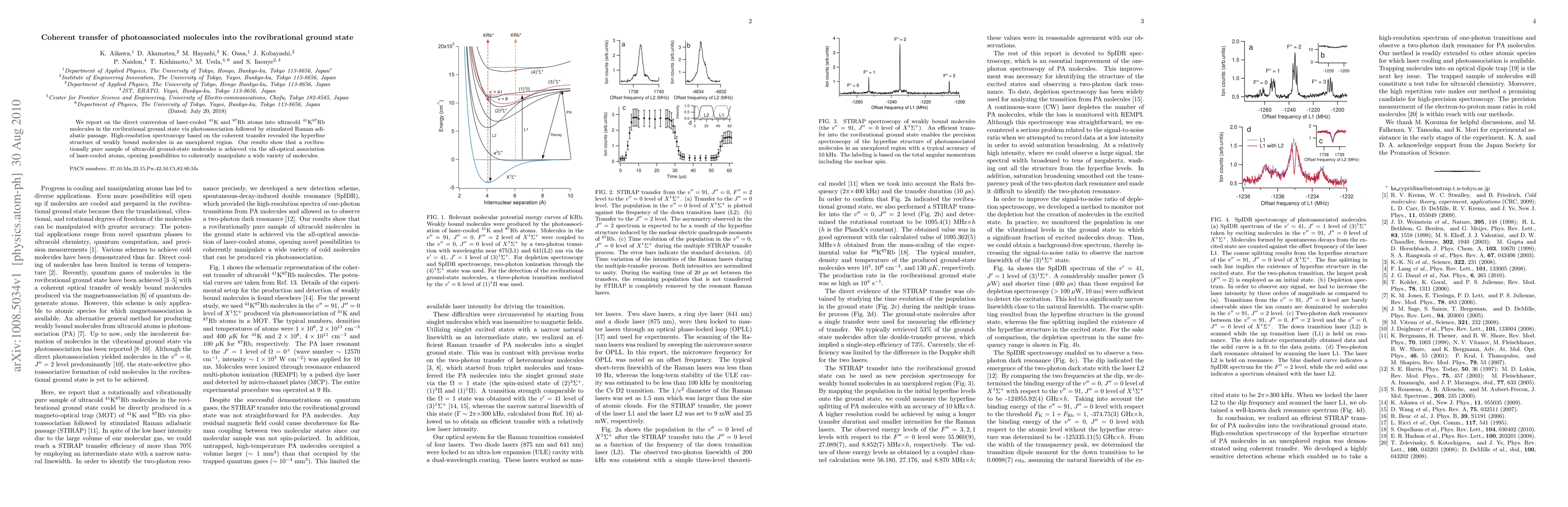 This paper details the successful conversion of laser-cooled 41K and 87Rb atoms into ultracold 41K87Rb molecules in their rovibrational ground state using photoassociation and stimulated Raman adiabatic passage, enabling high-resolution spectroscopy and revealing new hyperfine structures. This method provides a rovibrationally pure sample, opening avenues for coherent manipulation of diverse molecules.