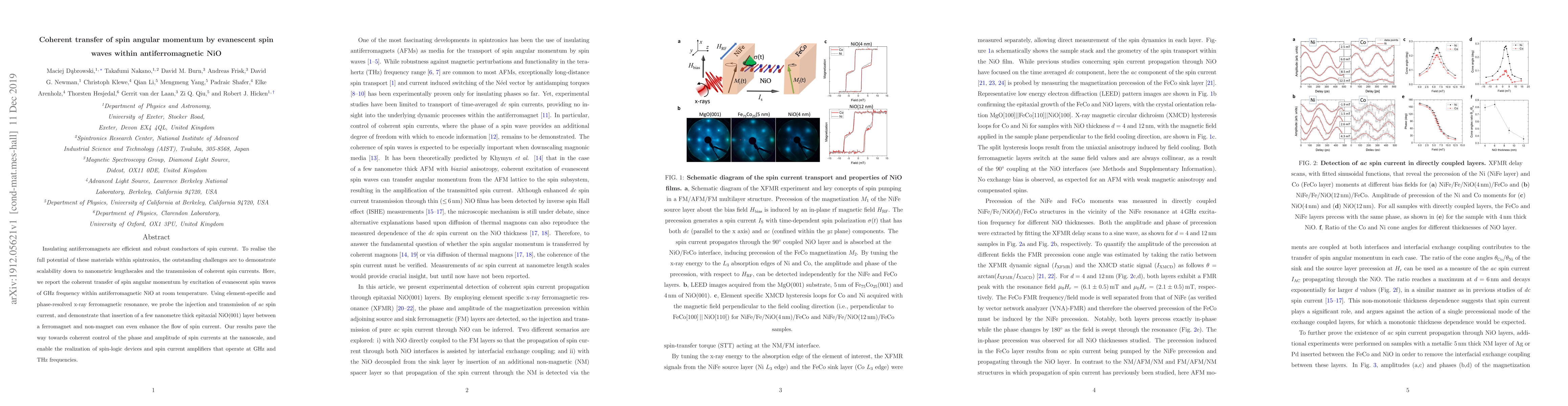This work distinguishes itself by demonstrating coherent transfer of spin angular momentum via evanescent spin waves in antiferromagnetic NiO at room temperature, which was not previously reported, and highlights the enhancement of spin current flow with the insertion of a thin NiO layer.