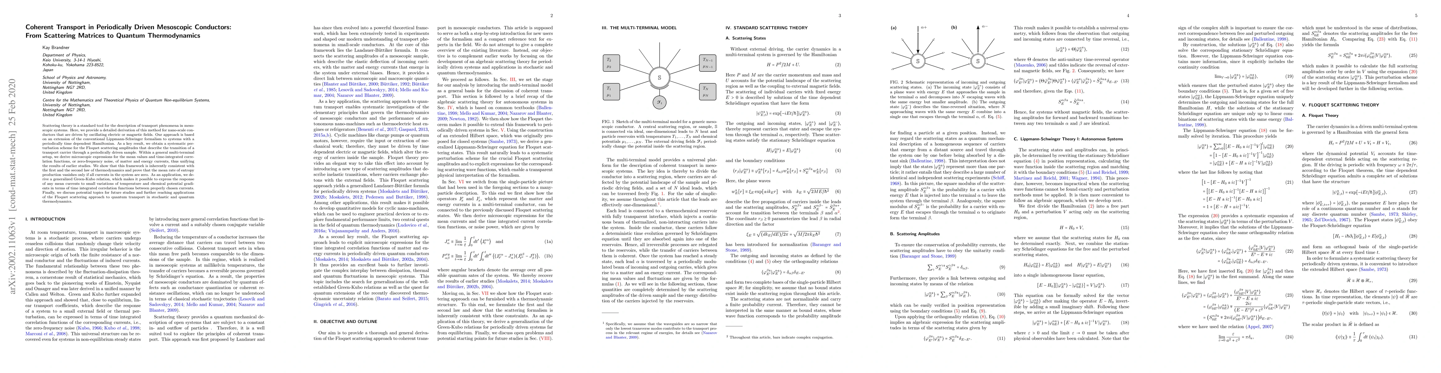 This paper extends the Lippmann-Schwinger formalism to derive a systematic perturbation scheme for Floquet scattering amplitudes in periodically driven mesoscopic conductors, unifying earlier studies and ensuring thermodynamic consistency. It also introduces a generalized Green-Kubo relation for expressing mean current responses to small temperature and chemical potential variations.