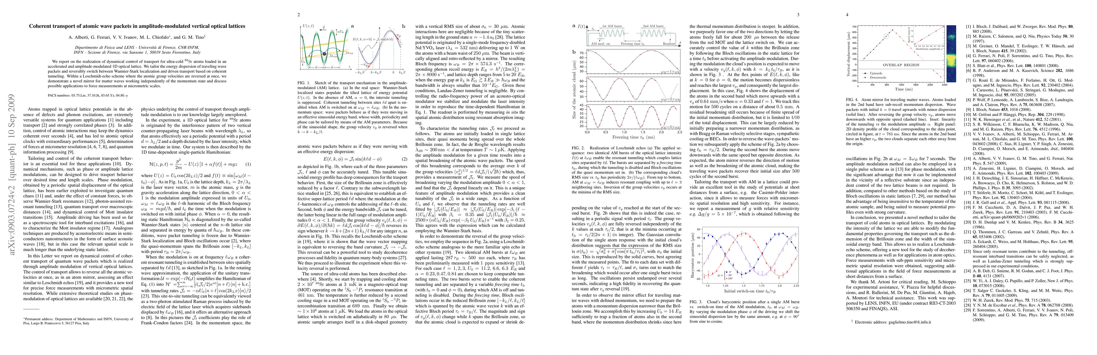 This paper demonstrates the coherent control of ultra-cold Sr88 atoms in an amplitude-modulated optical lattice, enabling reversible transitions between localization and transport via coherent tunneling. A novel matter wave mirror is shown to work independently of momentum state, with potential applications for micrometric force measurements.