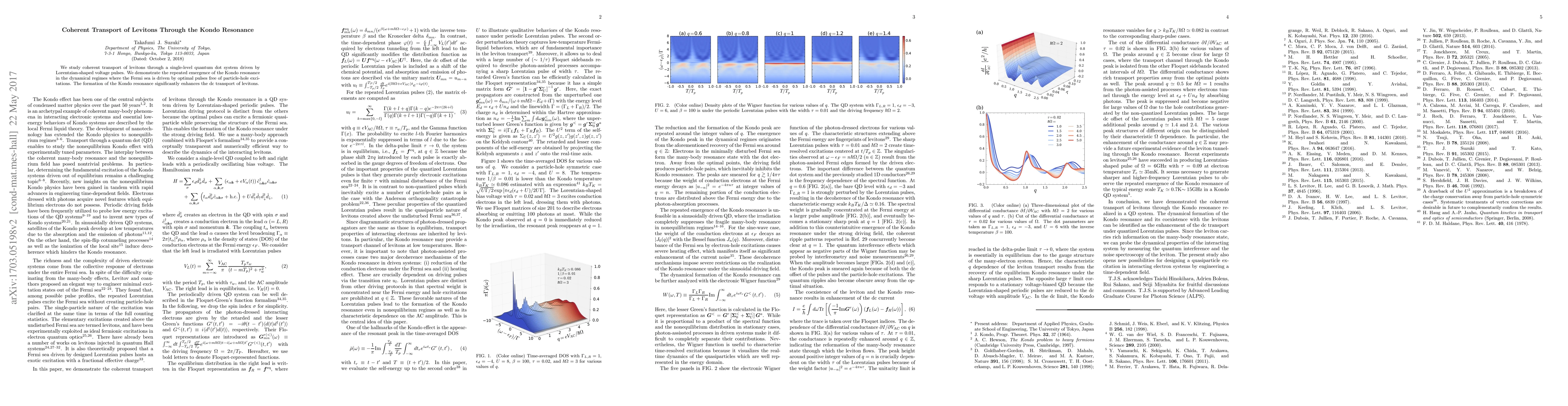 The paper presents a theoretical framework for understanding coherent leviton transport through the Kondo resonance under Lorentzian-shaped voltage pulses, highlighting the role of quantized pulses in preserving purely electronic excitations.