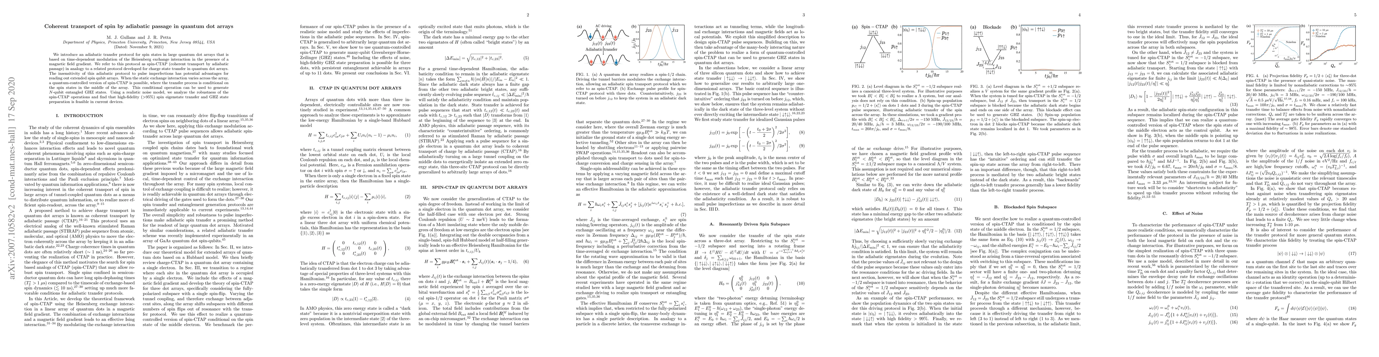 The research introduces an adiabatic transfer protocol for spin states in large quantum dot arrays, based on time-dependent modulation of the Heisenberg exchange interaction in the presence of a magnetic field gradient, referred to as spin-CTAP.