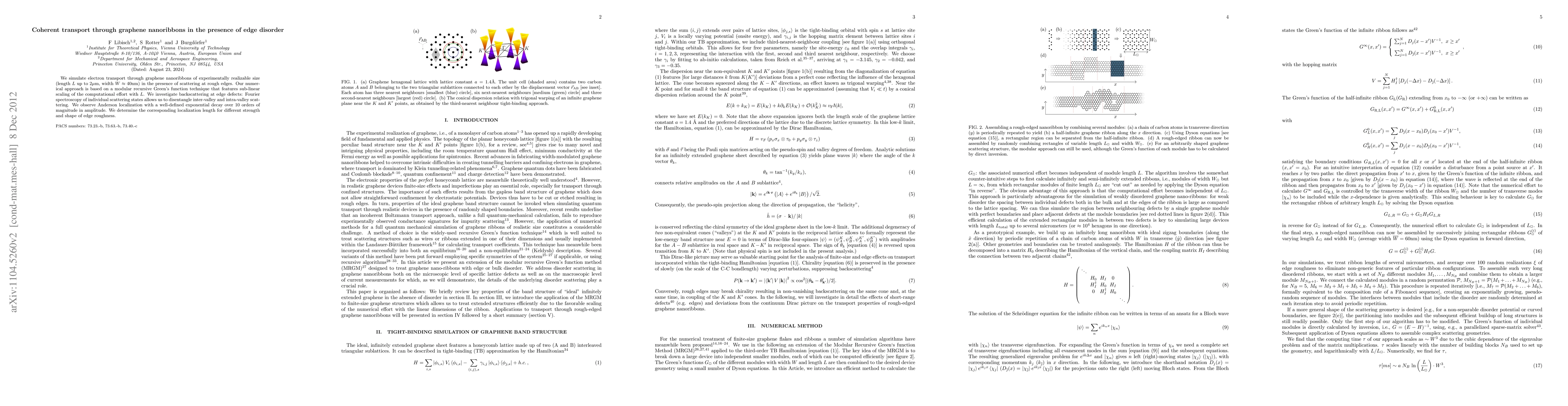 The study used a modular recursive Green's function technique to identify the influence of broken symmetry and K-K' scattering on electron transport.