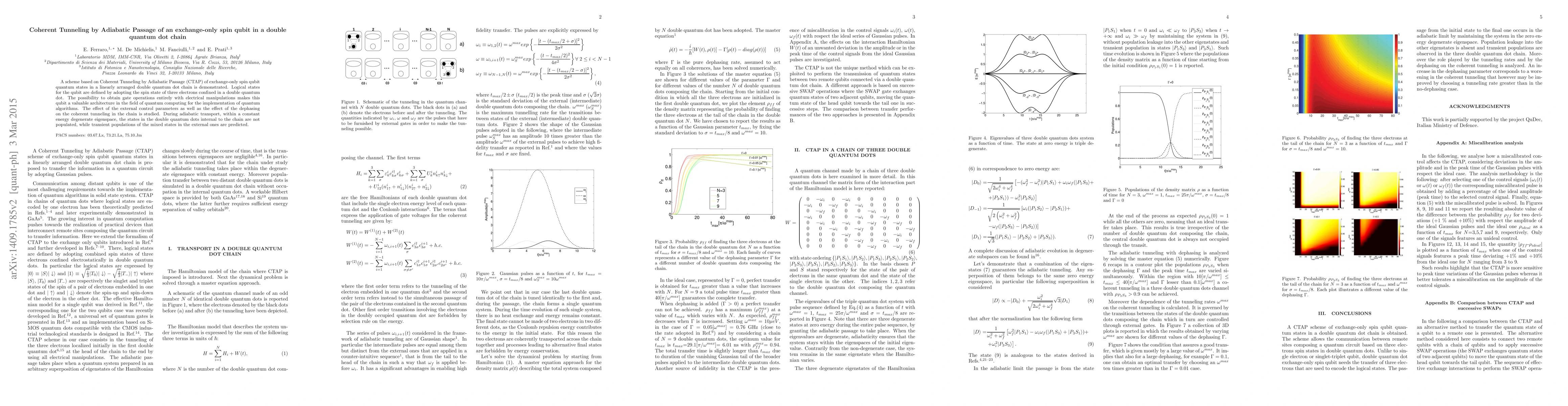 This paper demonstrates a Coherent Tunneling by Adiabatic Passage (CTAP) scheme for an exchange-only spin qubit in a double quantum dot chain, using the spin states of three electrons for logical operations. The study explores the impact of external control parameters and dephasing on coherent tunneling, highlighting the potential for purely electrical gate operations in quantum computing.