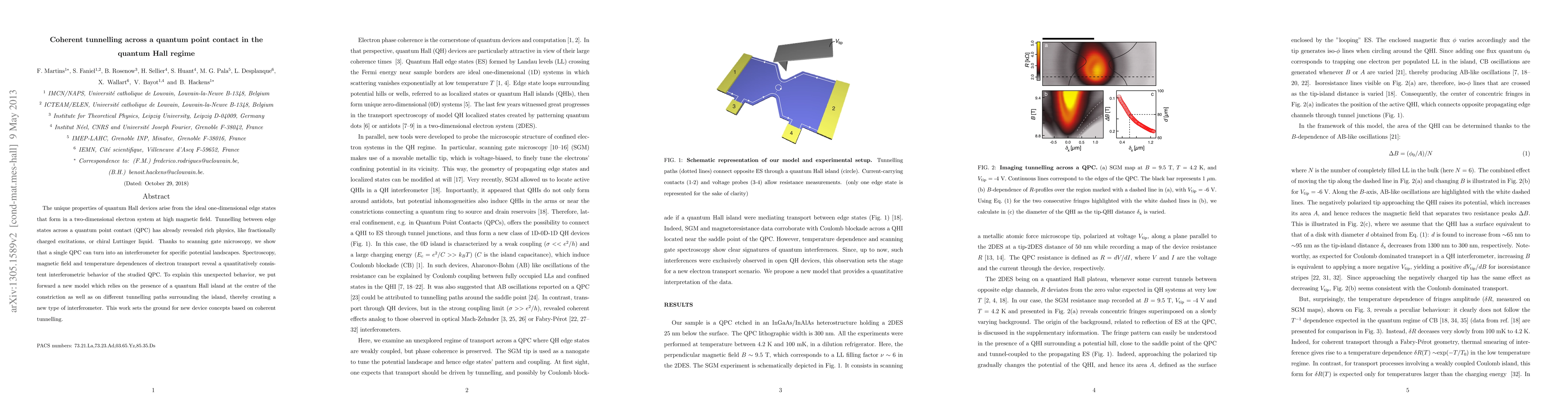 The unique properties of quantum Hall devices arise from the ideal one-dimensional edge states that form in a two-dimensional electron system at high magnetic field. Tunnelling between edge states across a quantum point contact (QPC) has already revealed rich physics, like fractionally charged excitations, or chiral Luttinger liquid. Thanks to scanning gate microscopy, we show that a single QPC can turn into an interferometer for specific potential landscapes. Spectroscopy, magnetic field and temperature dependences of electron transport reveal a quantitatively consistent interferometric behavior of the studied QPC. To explain this unexpected behavior, we put forward a new model which relies on the presence of a quantum Hall island at the centre of the constriction as well as on different tunnelling paths surrounding the island, thereby creating a new type of interferometer. This work sets the ground for new device concepts based on coherent tunnelling.