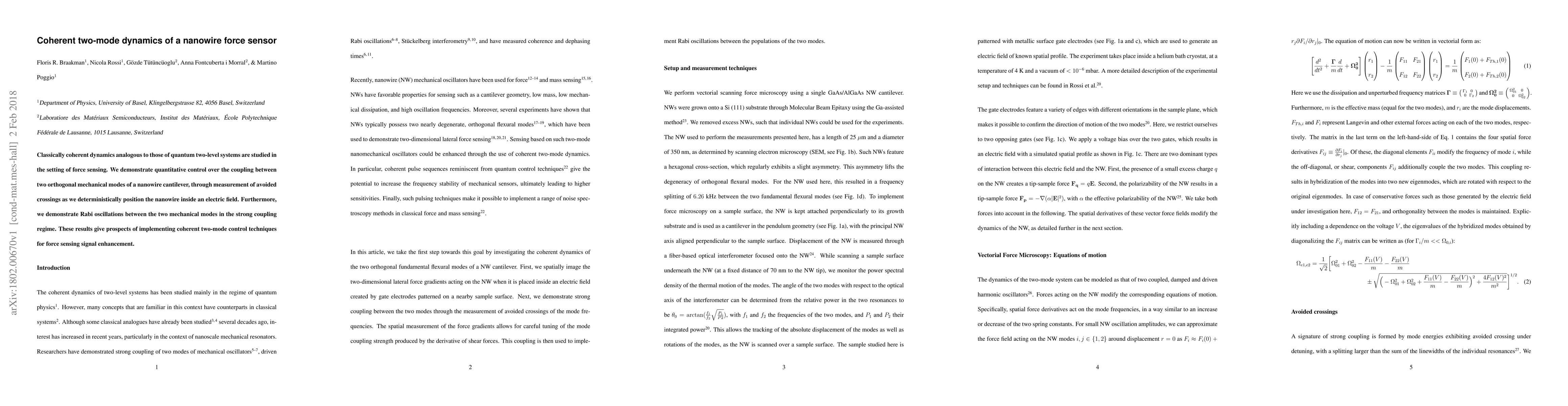 Researchers controlled the coupling between two mechanical modes in a nanowire cantilever, achieving coherent dynamics similar to quantum systems, which could enhance force sensing signal.