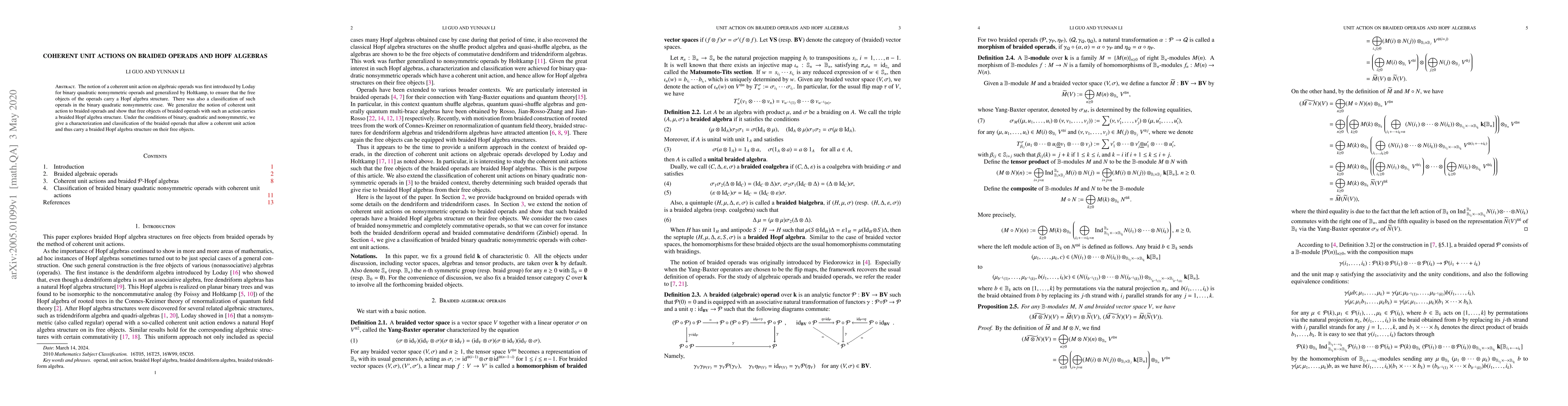 This paper extends the concept of coherent unit actions to braided operads, demonstrating that free objects of these operads possess a braided Hopf algebra structure. It classifies binary quadratic nonsymmetric braided operads that admit such actions, ensuring their free objects have a corresponding braided Hopf algebra structure.