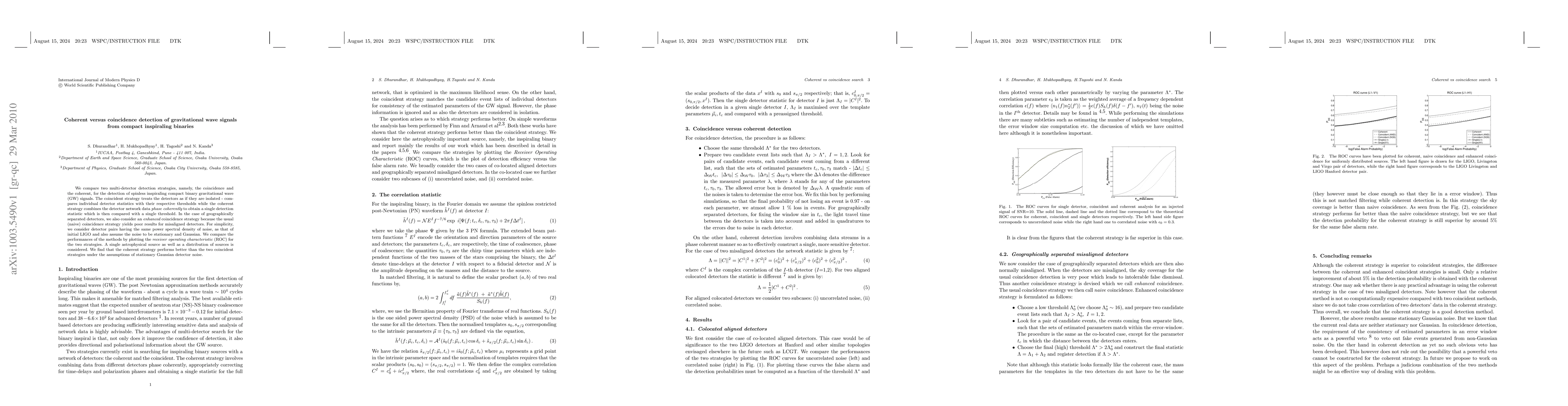 This paper compares the performance of two gravitational wave detection strategies: coincident and coherent detection. The coherent method, which combines data from multiple detectors phase-coherently, outperforms the coincident method, which treats detectors independently, under the assumption of stationary Gaussian noise.