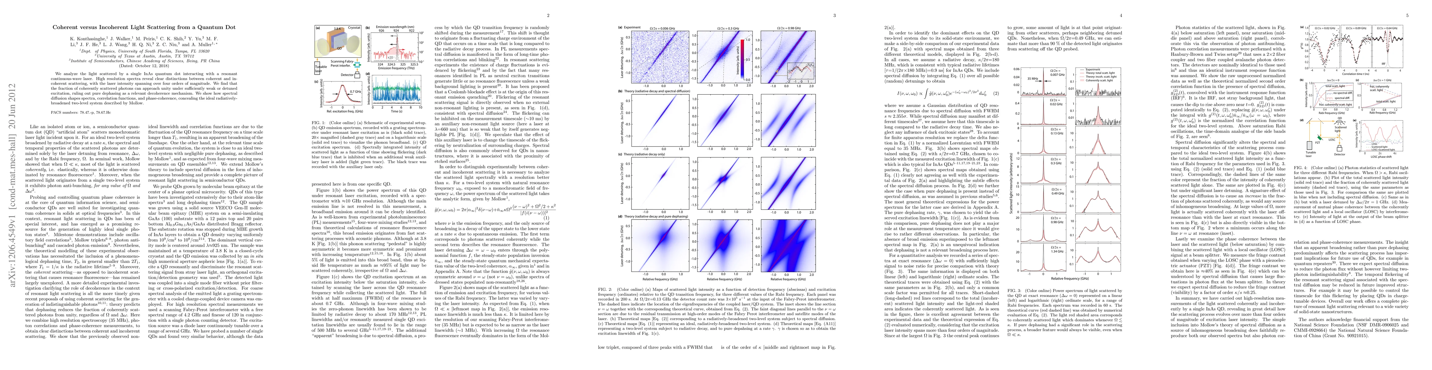 This study investigates light scattering from a single InAs quantum dot under varying laser intensities, distinguishing between coherent and incoherent scattering. The research finds that coherent scattering dominates under weak or detuned excitation, indicating that pure dephasing is not the primary decoherence mechanism.
