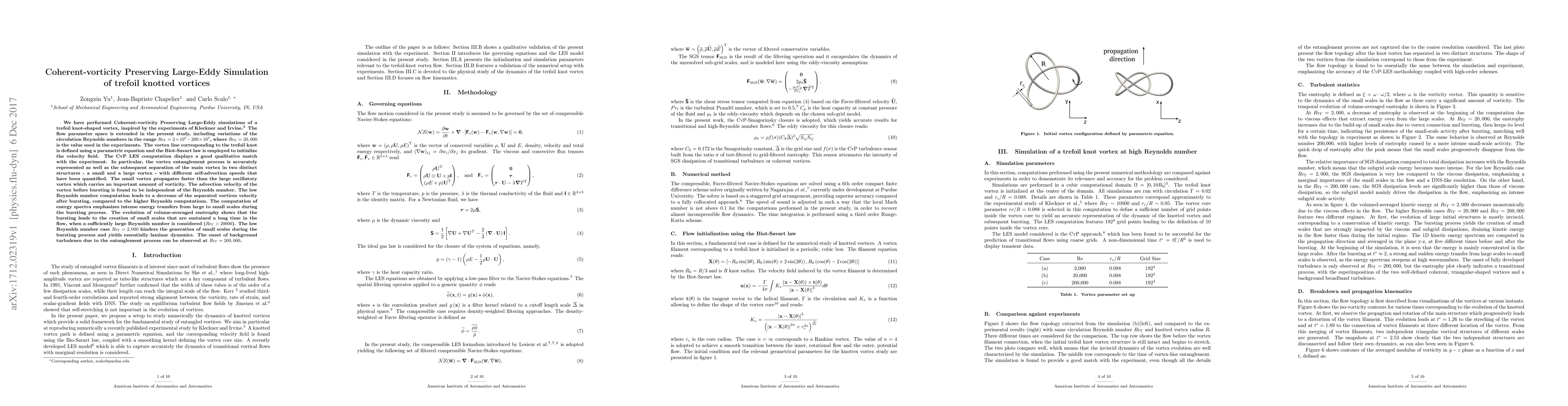 Researchers simulated trefoil knot-shaped vortices using a new method that accurately represents their entanglement process and bursting into smaller vortices, with effects influenced by Reynolds numbers.