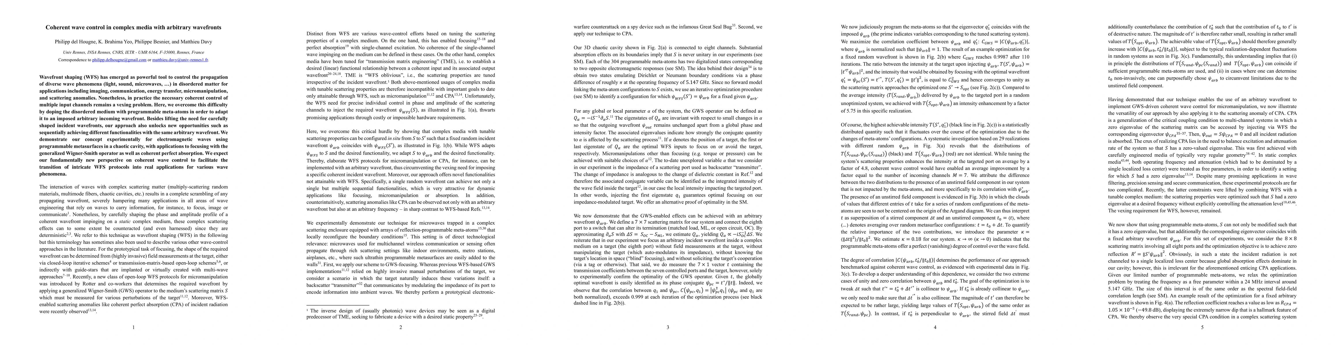 Wavefront shaping (WFS) has emerged as powerful tool to control the propagation of diverse wave phenomena (light, sound, microwaves, ...) in disordered matter for applications including imaging, communication, energy transfer, micromanipulation, and scattering anomalies. Nonetheless, in practice the necessary coherent control of multiple input channels remains a vexing problem. Here, we overcome this difficulty by doping the disordered medium with programmable meta-atoms in order to adapt it to an imposed arbitrary incoming wavefront. Besides lifting the need for carefully shaped incident wavefronts, our approach also unlocks new opportunities such as sequentially achieving different functionalities with the same arbitrary wavefront. We demonstrate our concept experimentally for electromagnetic waves using programmable metasurfaces in a chaotic cavity, with applications to focusing with the generalized Wigner-Smith operator as well as coherent perfect absorption. We expect our fundamentally new perspective on coherent wave control to facilitate the transition of intricate WFS protocols into real applications for various wave phenomena.