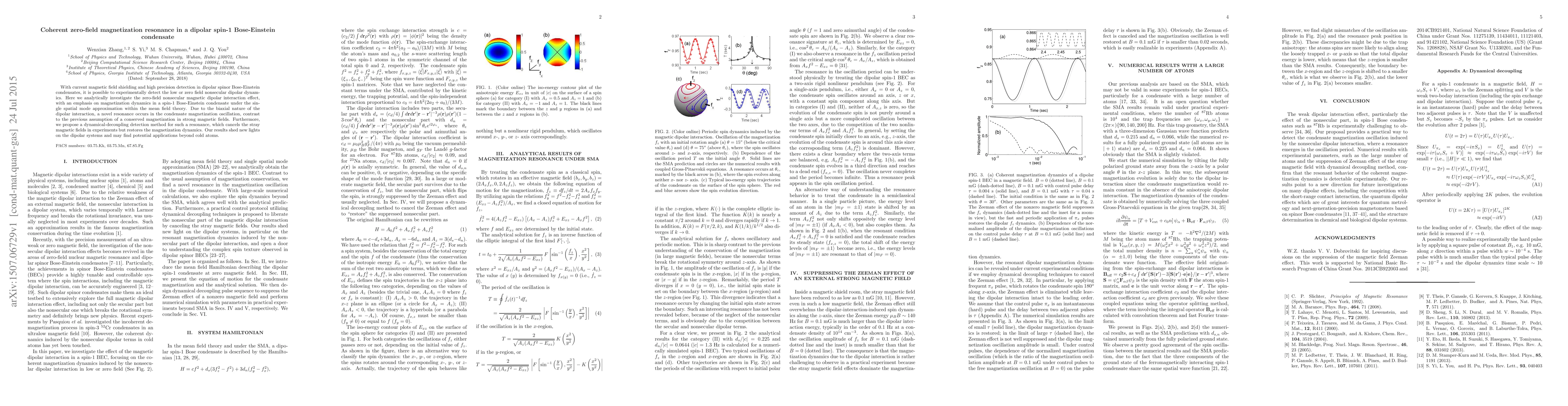 This paper investigates the zero-field nonsecular dipolar dynamics in a spin-1 Bose-Einstein condensate, revealing a novel resonance in magnetization oscillation due to the biaxial nature of the dipolar interaction. The authors propose a dynamical-decoupling detection method to observe this resonance, which cancels stray magnetic fields and restores magnetization dynamics.