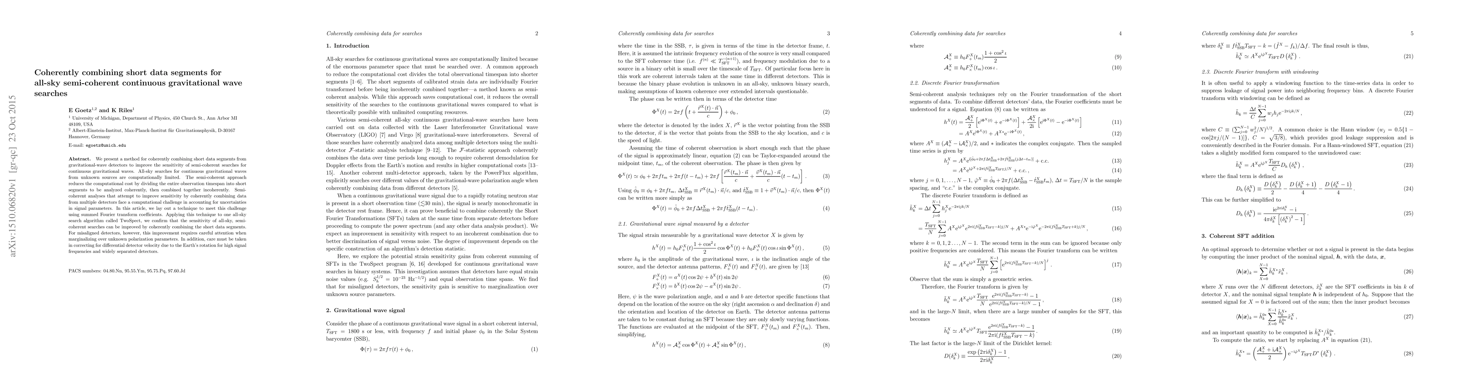 This paper introduces a method to enhance the sensitivity of semi-coherent searches for continuous gravitational waves by coherently combining short data segments from multiple detectors. The technique addresses computational challenges and improves the TwoSpect all-sky search algorithm, though careful consideration is needed for misaligned detectors and differential detector velocities.