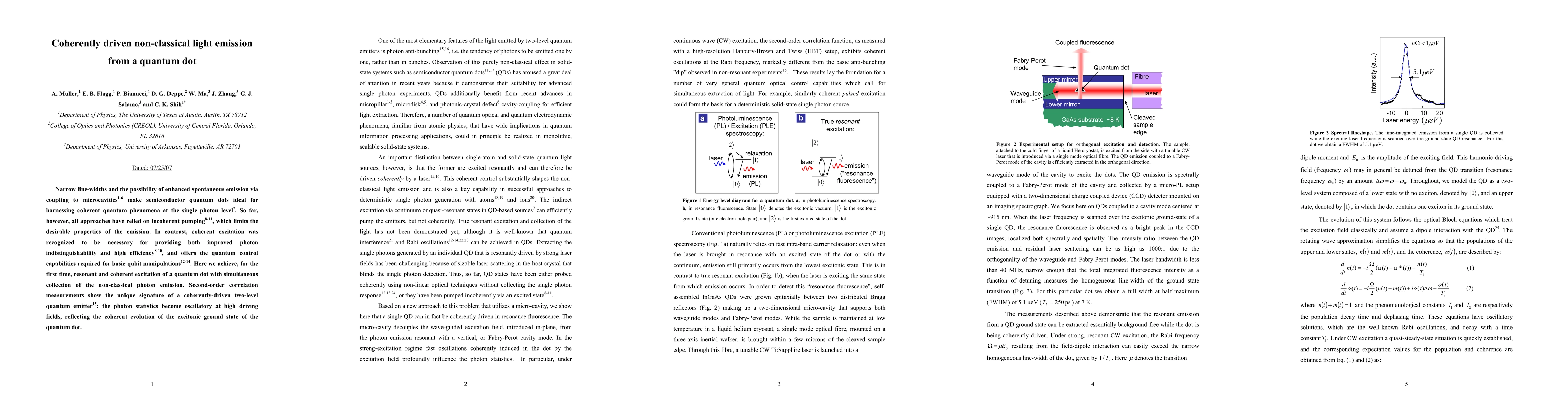 This paper reports the first coherent excitation of a semiconductor quantum dot, achieving non-classical photon emission with improved photon indistinguishability and high efficiency. Second-order correlation measurements reveal oscillatory photon statistics, indicating coherent evolution of the quantum dot's excitonic ground state.