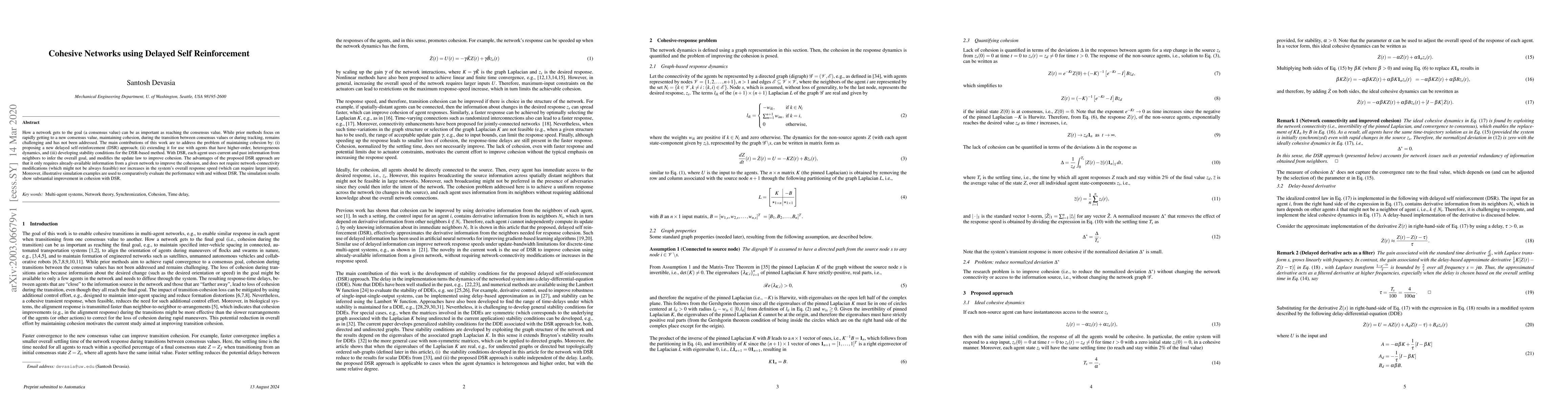 Researchers developed a method called Delayed Self Reinforcement to improve cohesion in networks while reaching consensus values, showing substantial improvement in simulations.
