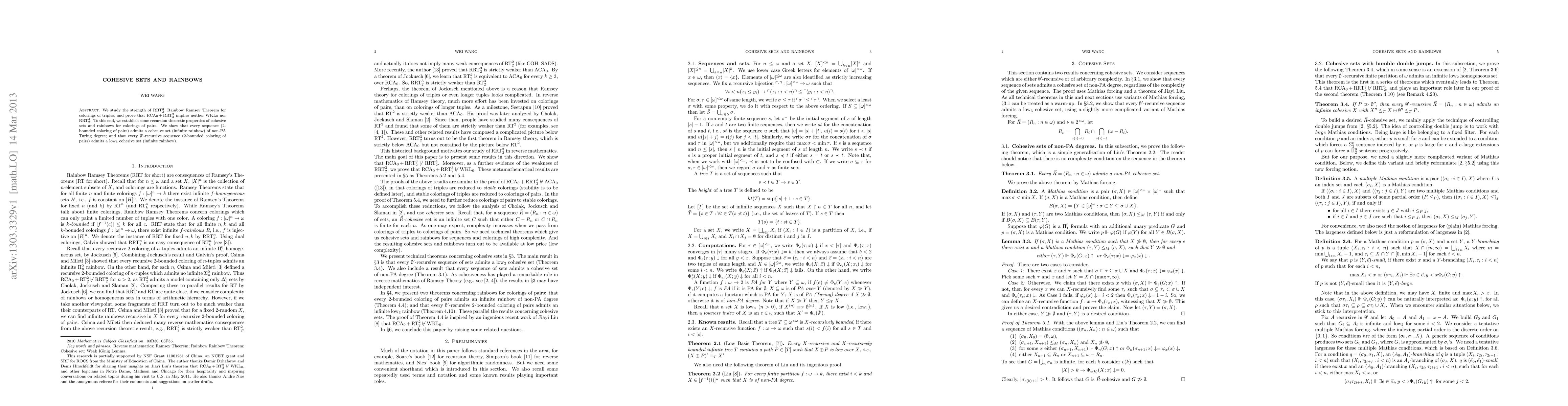 The paper proves that combining the principles of Ramsey Theory and Recursive Mathematics does not imply certain logical systems, specifically Weak Konig's Law (WKL) or Rainbow Ramsey Theorem for colorings of quadruples.