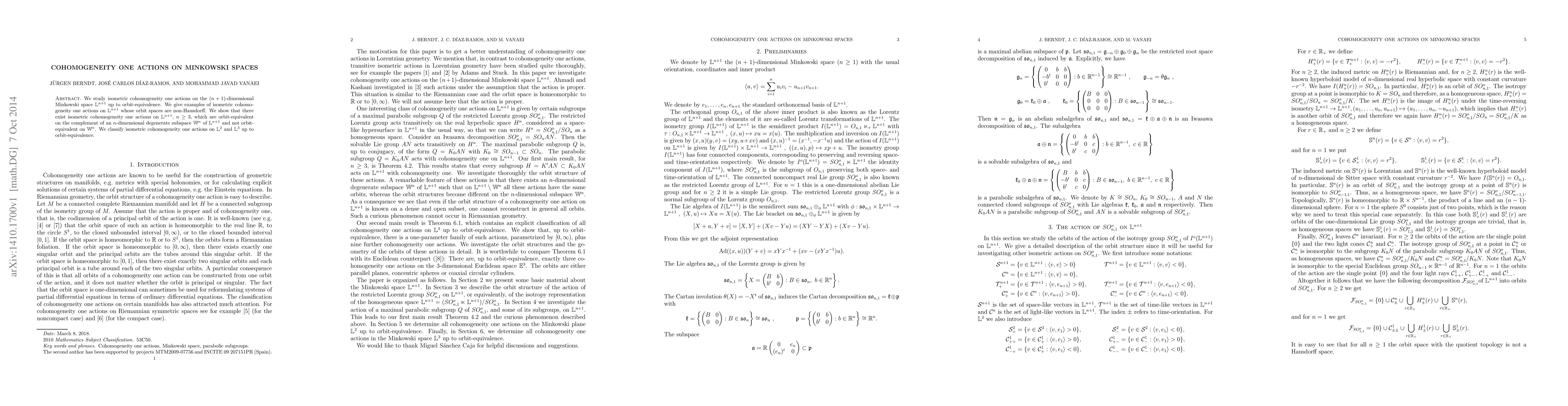 This paper explores isometric cohomogeneity one actions on Minkowski spaces, providing examples with non-Hausdorff orbit spaces and classifying such actions in dimensions 2 and 3 up to orbit-equivalence, including instances where actions are equivalent outside specific degenerate subspaces but not on them.
