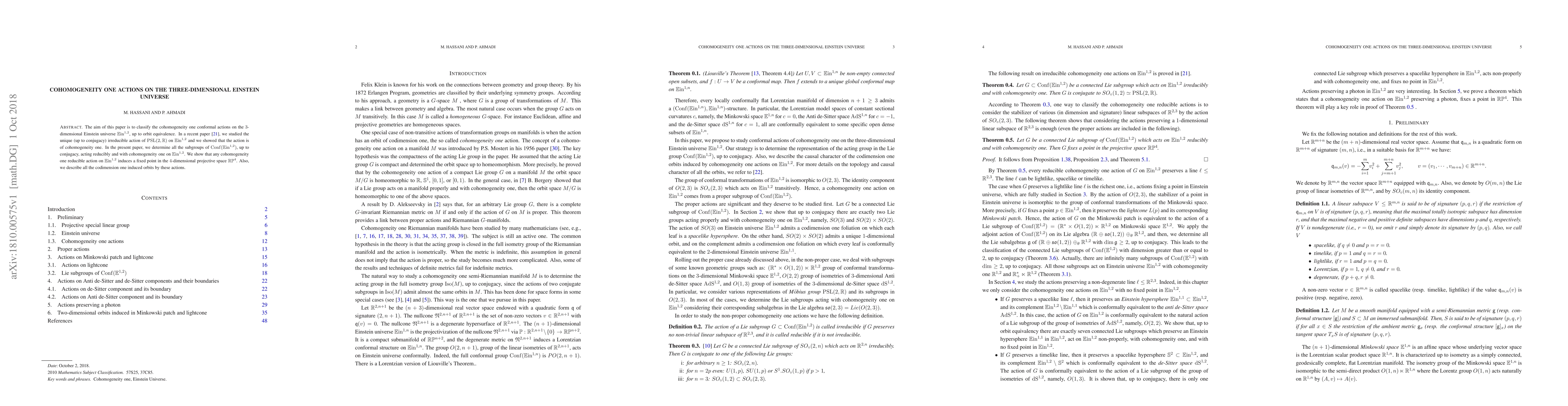 The aim of this paper is to classify the cohomogeneity one conformal actions on the 3-dimensional Einstein universe $Ein^{1;2}$ , up to orbit equivalence. In a recent paper [21], we studied the unique (up to conjugacy) irreducible action of $PSL(2; \mathbb{R})$ on $Ein^{1;2}$ and we showed that the action is of cohomogeneity one. In the present paper, we determine all the subgroups of $Conf(Ein^{1;2})$, up to conjugacy, acting reducibly and with cohomogeneity one on $Ein^{1;2}$. We show that any cohomogeneity one reducible action on $Ein^{1;2}$ induces a fixed point in the 4-dimensional projective space $\mathbb{R} \mathbb{P}^4$. Also, we describe all the codimension one induced orbits by these actions