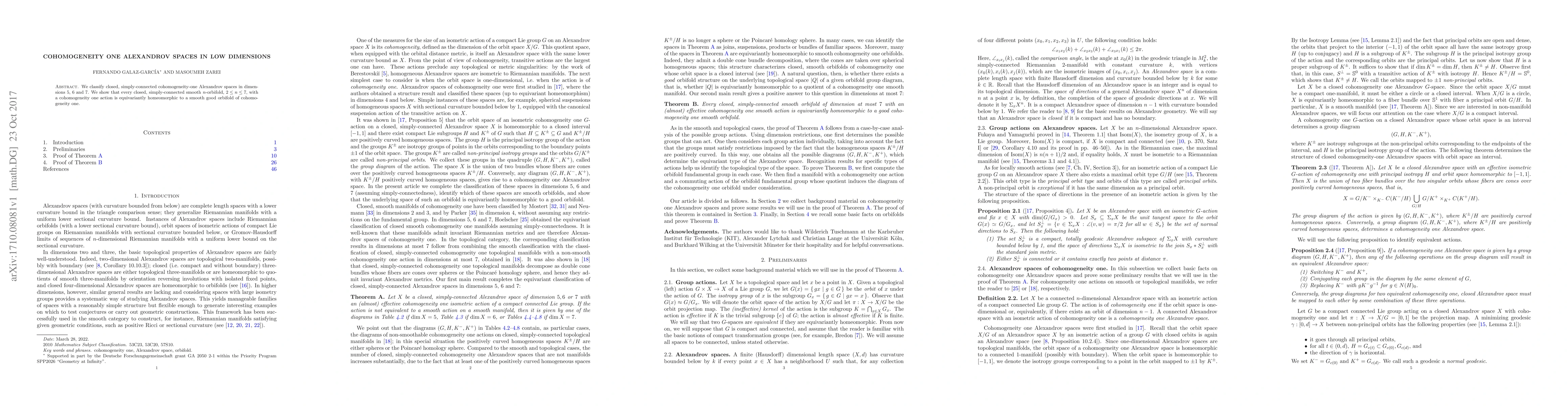 We classify closed, simply-connected cohomogeneity-one Alexandrov spaces in dimensions $5$, $6$ and $7$. We show that every closed, simply-connected smooth $n$-orbifold, $2\leq n\leq 7$ with a cohomogeneity one action is equivariantly homeomorphic to a smooth good orbifold of cohomogeneity one.