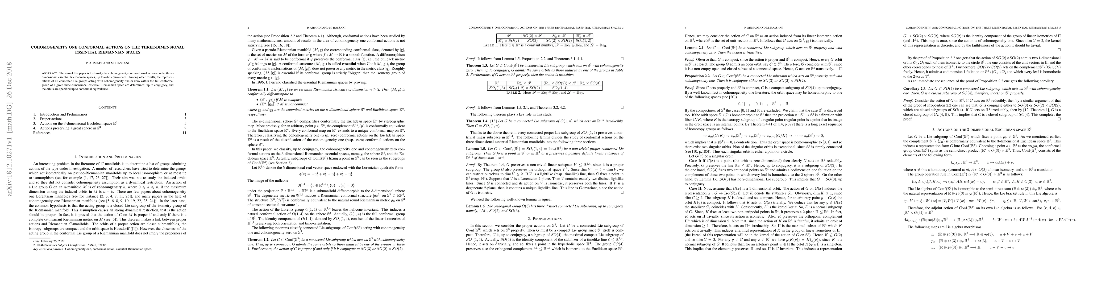 This paper classifies cohomogeneity one conformal actions on three-dimensional essential Riemannian spaces, determining representations of connected Lie groups and specifying orbits up to conformal equivalence. The focus is on orbit equivalence and the full conformal group's actions within these spaces.