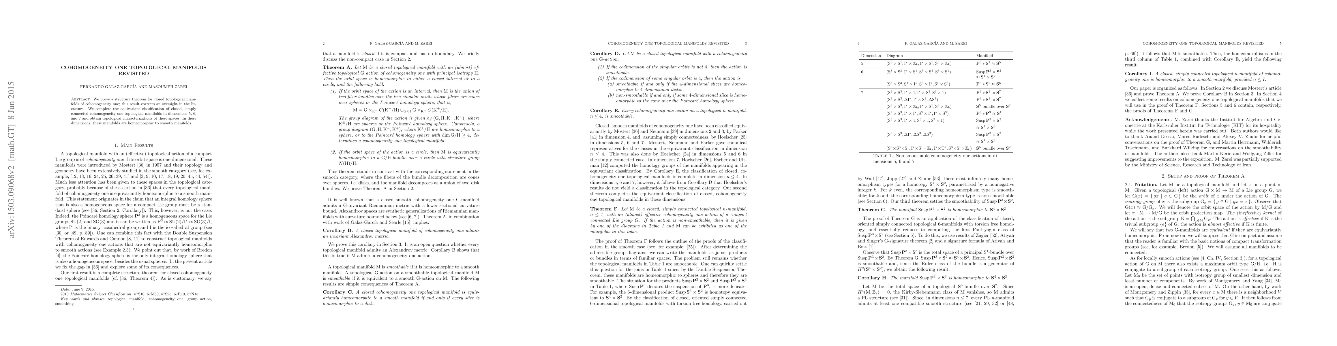 This paper proves a corrected structure theorem for closed topological manifolds of cohomogeneity one and completes the equivariant classification of simply connected examples in dimensions 5, 6, and 7, showing they are homeomorphic to smooth manifolds.