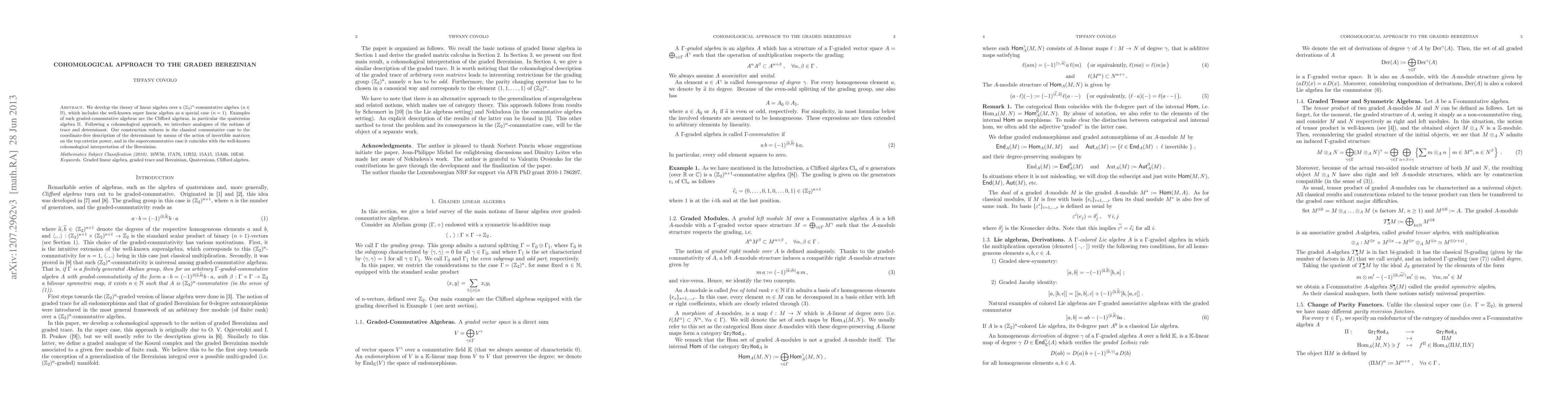 We develop the theory of linear algebra over a (Z_2)^n-commutative algebra (n in N), which includes the well-known super linear algebra as a special case (n=1). Examples of such graded-commutative algebras are the Clifford algebras, in particular the quaternion algebra H. Following a cohomological approach, we introduce analogues of the notions of trace and determinant. Our construction reduces in the classical commutative case to the coordinate-free description of the determinant by means of the action of invertible matrices on the top exterior power, and in the supercommutative case it coincides with the well-known cohomological interpretation of the Berezinian.