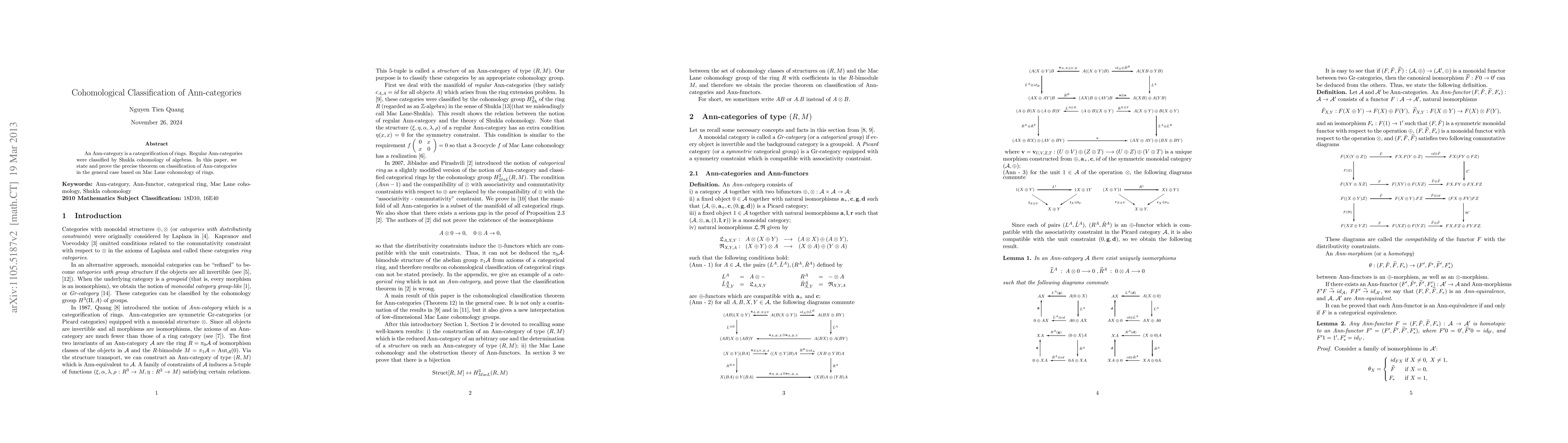 The notion of Ann-categories is a categorification of the ring structure. Regular Ann-categories were classified by Shukla algebraic cohomology. In this article, we state and prove the precise theorem on classification for the general case due to Mac Lane cohomology for rings. And an application for classification problem of ring extensions is also introduced.