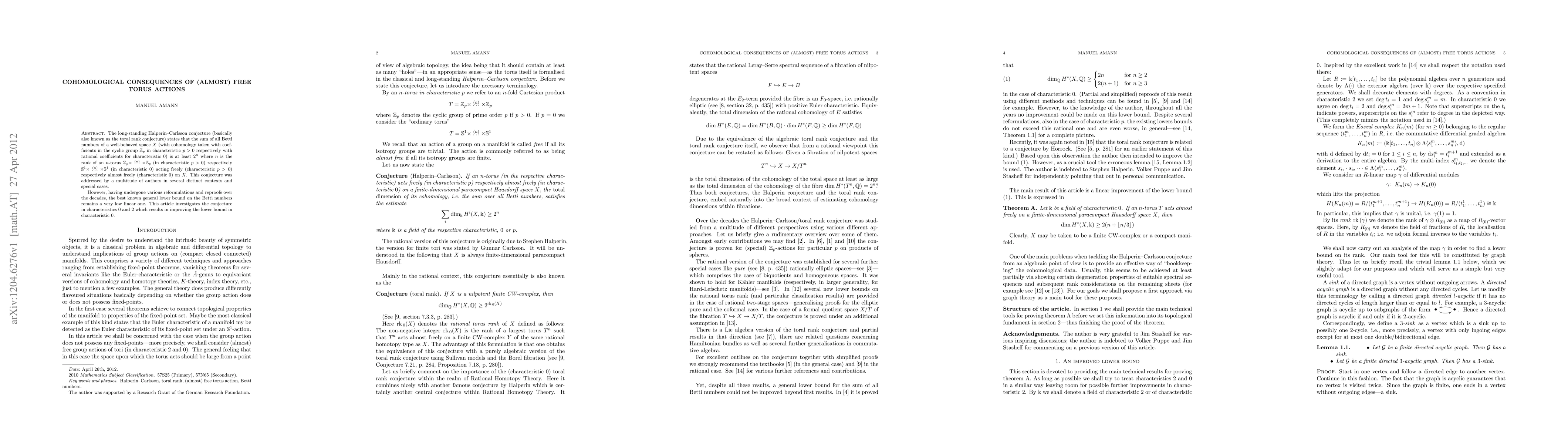 The paper improves the lower bound on Betti numbers for well-behaved spaces under almost free torus actions in characteristics 0 and 2.