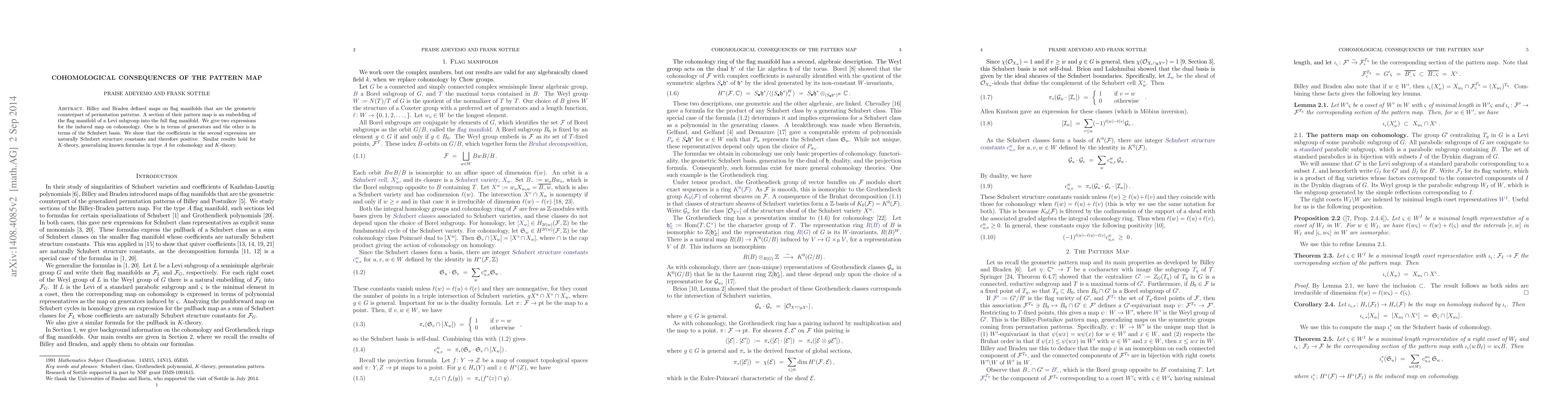 Billey and Braden defined maps on flag manifolds that are the geometric counterpart of permutation patterns. A section of their pattern map is an embedding of the flag manifold of a Levi subgroup into the full flag manifold. We give two expressions for the induced map on cohomology. One is in terms of generators and the other is in terms of the Schubert basis. We show that the coefficients in the second expression are naturally Schubert structure constants and therefore positive. These formulas also hold for K-theory, and generalize known formulas in type A for cohomology and K-theory.