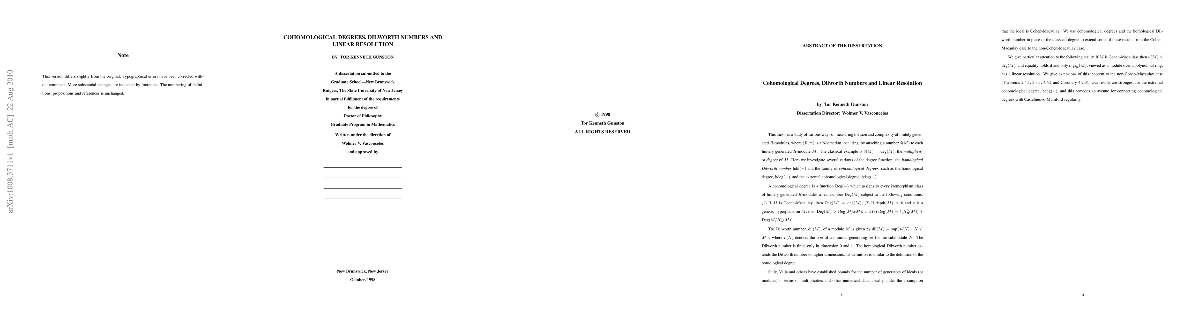 This thesis is a study of various ways of measuring the size and complexity of finitely generated modules over a Noetherian local ring. The classical example is the multiplicity or degree. Here we investigate several variants of the degree function: the homological Dilworth number, hdil, and the family of cohomological degrees, such as the homological degree hdeg, and the extremal cohomological degree, bdeg. Sally, Valla and others have established bounds for the number of generators of ideals (or modules) in terms of multiplicities and other numerical data, usually under the assumption that the ideal is Cohen-Macaulay. We use cohomological degrees and the homological Dilworth number in place of the classical degree to extend some of these results from the Cohen-Macaulay case to the non-Cohen-Macaulay case. We give particular attention to the following result: If M is Cohen-Macaulay, then the minimal number of generators is bounded by the multiplicity of M, with equality if and only if the associated graded ring has a linear resolution. We give extensions of this theorem to the non-Cohen-Macaulay case. Our results are strongest for the extremal cohomological degree, bdeg, and this provides an avenue for connecting cohomological degrees with Castelnuovo-Mumford regularity.