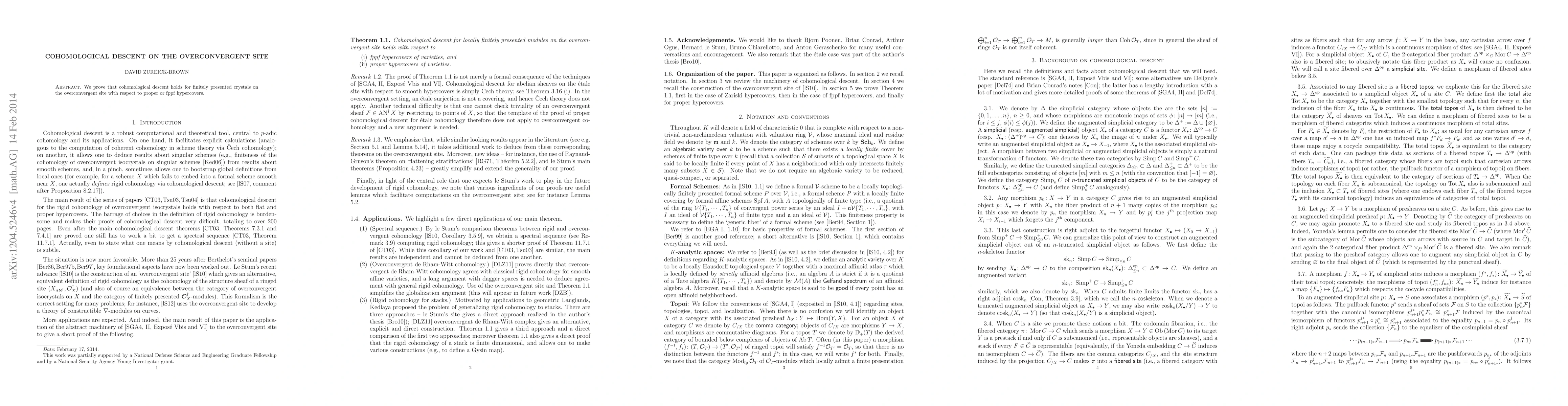 We prove that cohomological descent holds for finitely presented crystals on the overconvergent site with respect to proper or fppf hypercovers.