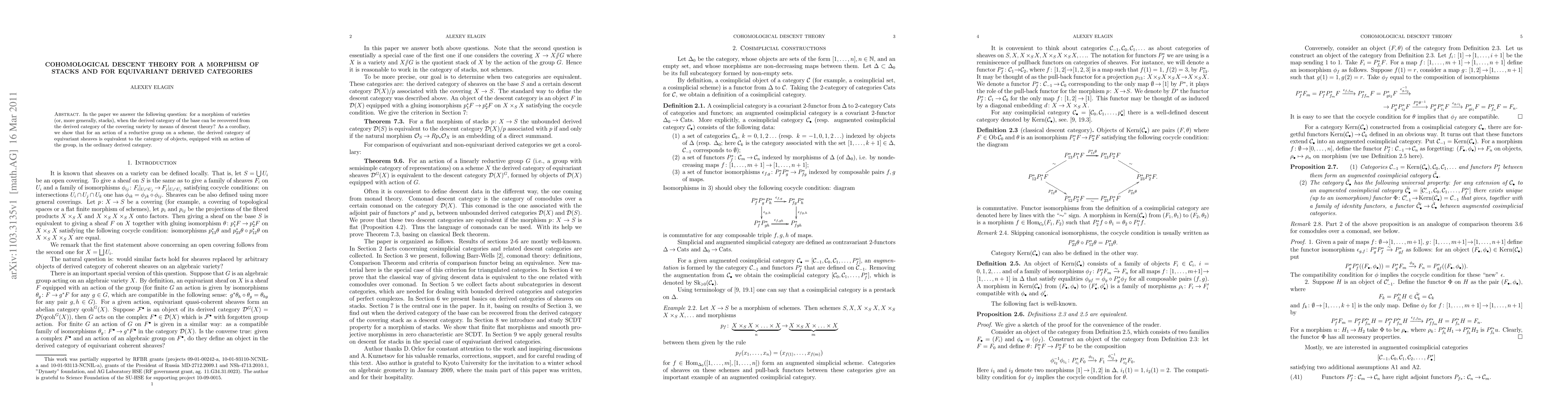 This paper explores cohomological descent theory for morphisms between stacks and establishes conditions under which the derived category of the base can be recovered from the covering variety. It also proves that the derived category of equivariant sheaves for a reductive group action is equivalent to the category of group-action-equipped objects in the ordinary derived category.