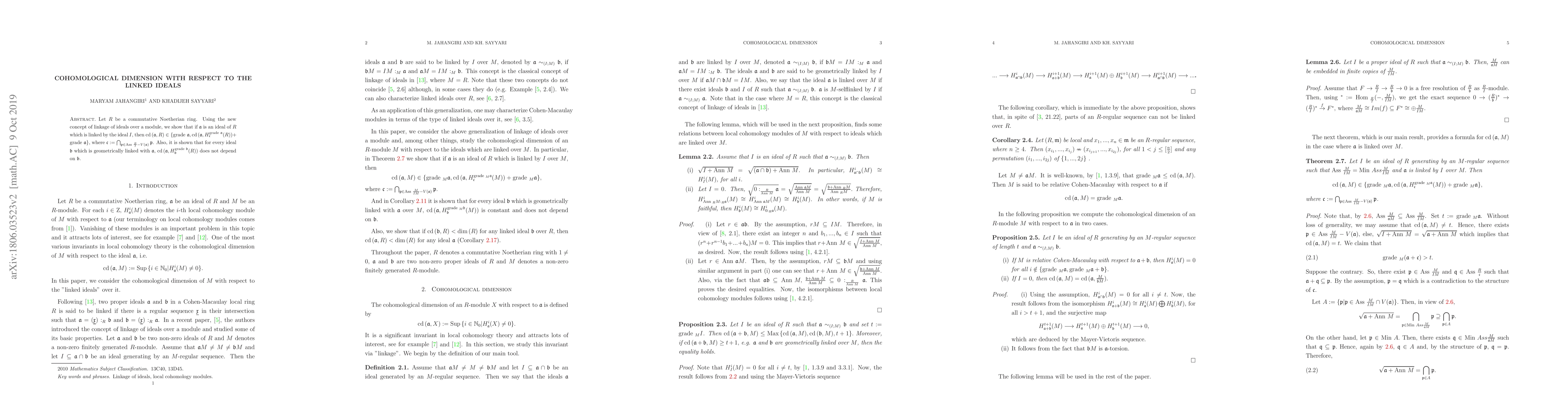 Let $R$ be a commutative Noetherian ring. Using the new concept of linkage of ideals over a module, we show that if $\mathfrak{a}$ is an ideal of $R$ which is linked by the ideal $I$, then $cd(\mathfrak{a},R) \in \{ grad \mathfrak{a}, cd(\fa, H^{grad \mathfrak{a}}_ {\mathfrak{c}} (R)) + grad \mathfrak{a}\}, $ where $\mathfrak{c} : = \bigcap_{\mathfrak{p} \in Ass \frac{R}{I}- V(\mathfrak{a})}\mathfrak{p}$. Also, it is shown that for every ideal $\mathfrak{b}$ which is geometrically linked with $\mathfrak{a},$ $cd(\mathfrak{a}, H^{grad \mathfrak{b}}_ {\mathfrak{b}} (R))$ does not depend on $\mathfrak{b}$