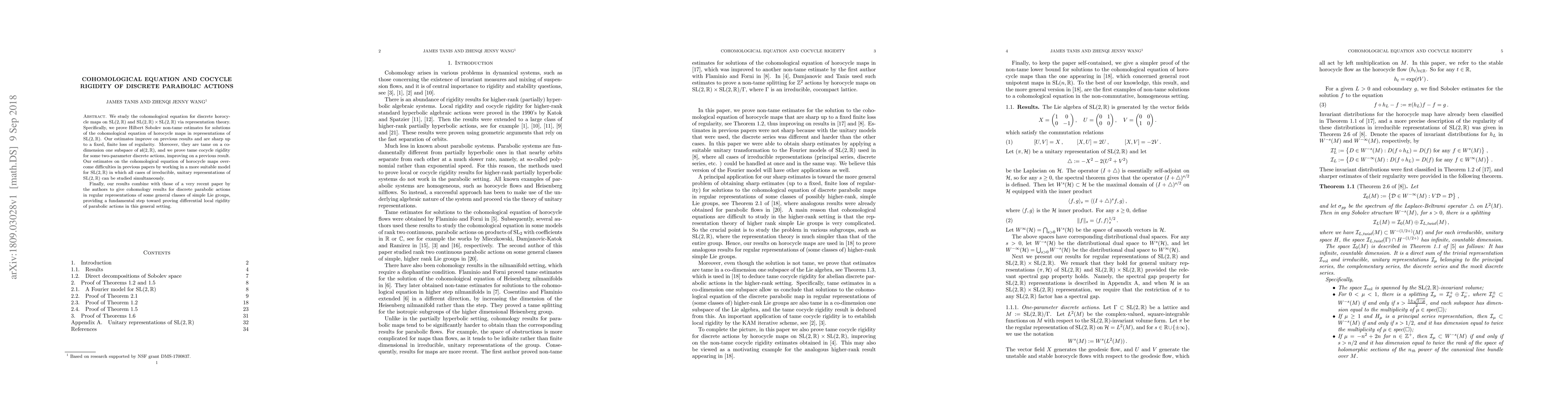 This paper studies the cohomological equation for discrete horocycle maps in $SL(2, \mathbb{R})$ representations, proving improved Hilbert Sobolev non-tame estimates and establishing tame cocycle rigidity for certain two-parameter actions. The results advance understanding of differential local rigidity in parabolic actions.