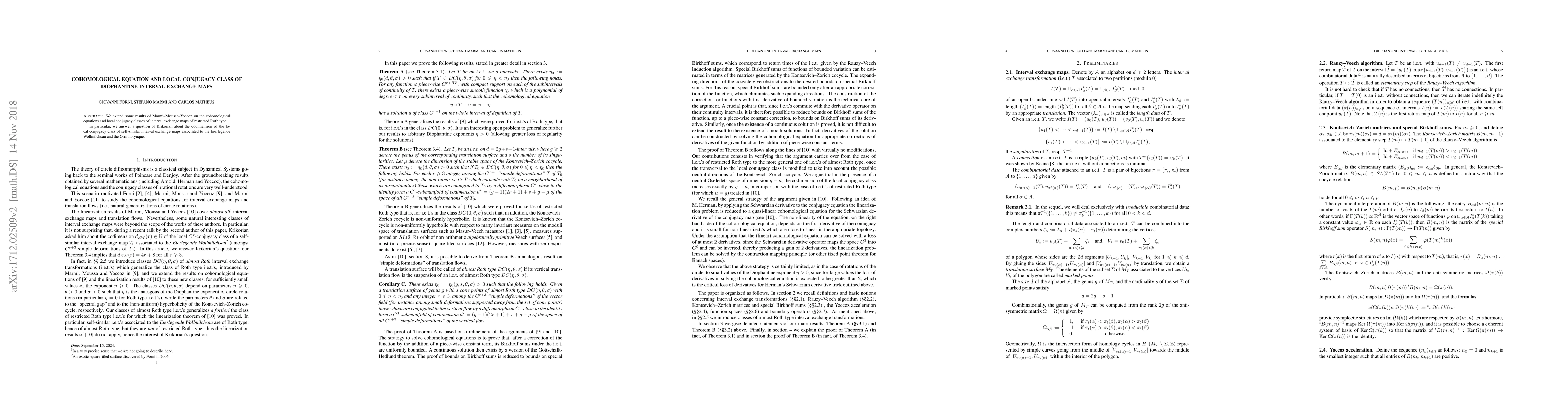 We extend some results of Marmi--Moussa--Yoccoz on the cohomological equations and local conjugacy classes of interval exchange maps of restricted Roth type. In particular, we answer a question of Krikorian about the codimension of the local conjugacy class of self-similar interval exchange maps associated to the Eierlegende Wollmilchsau and the Ornithorynque.