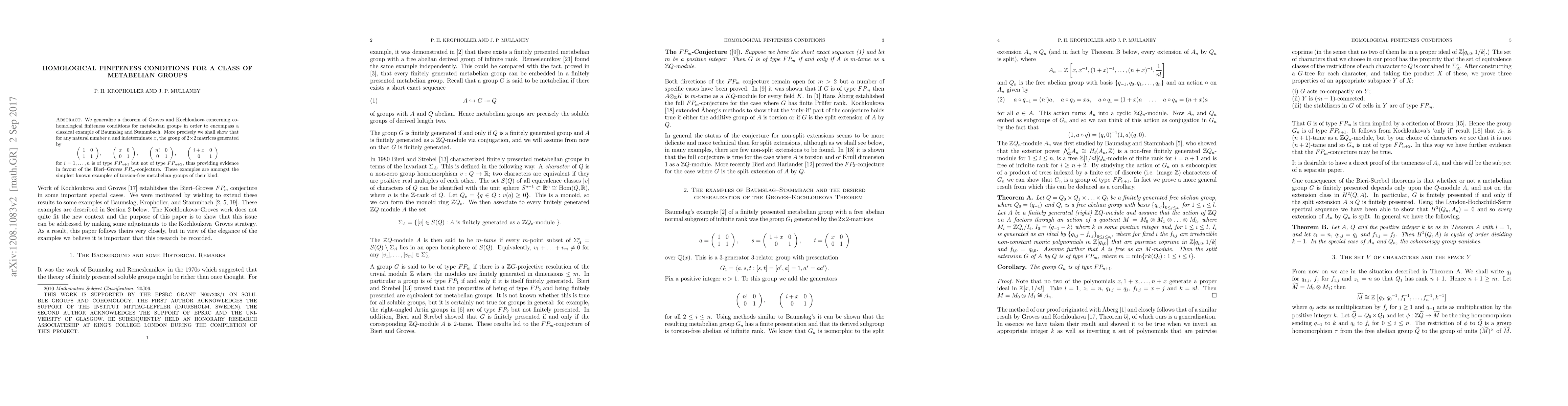 Summary: This paper investigates a class of metabelian groups, demonstrating their compliance with the Bieri-Groves conjecture, which links cohomological finiteness to the Bieri-Neumann-Strebel sigma invariant. The findings support the conjecture for these specific groups.