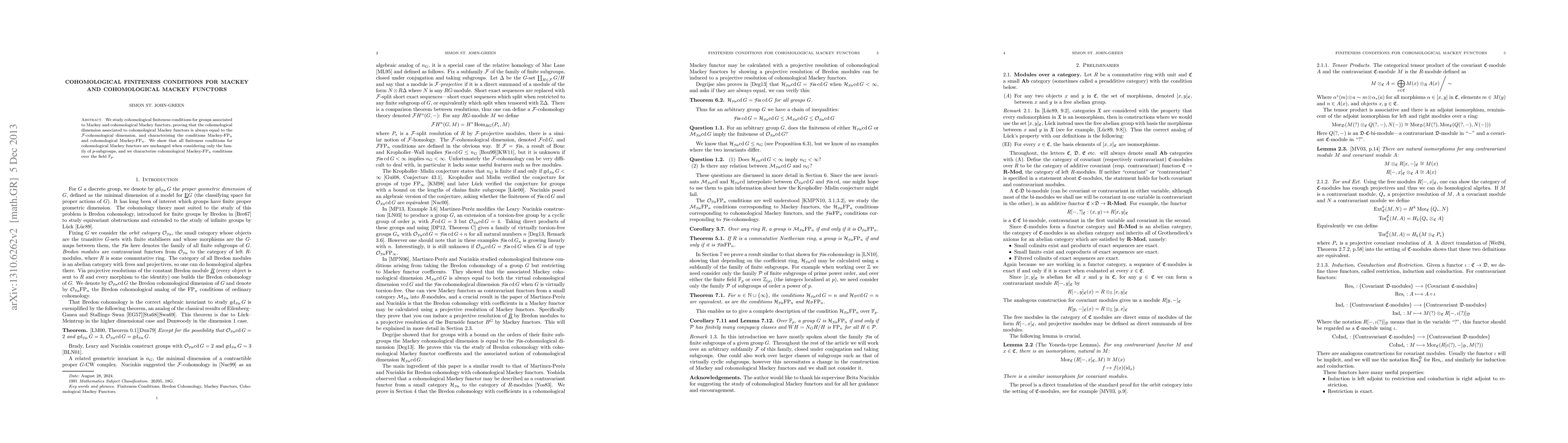 We study cohomological finiteness conditions for groups associated to Mackey and cohomological Mackey functors, proving that the cohomological dimension associated to cohomological Mackey functors is always equal to the $\mathcal{F}$-cohomological dimension, and characterising the conditions Mackey-$\mathrm{FP}_n$ and cohomological Mackey-$\mathrm{FP}_n$. We show that all finiteness conditions for cohomological Mackey functors are unchanged when considering only the family of $p$-subgroups, and we characterise cohomological Mackey-$\mathrm{FP}_n$ conditions over the finite field $\mathbb{F}_p$.