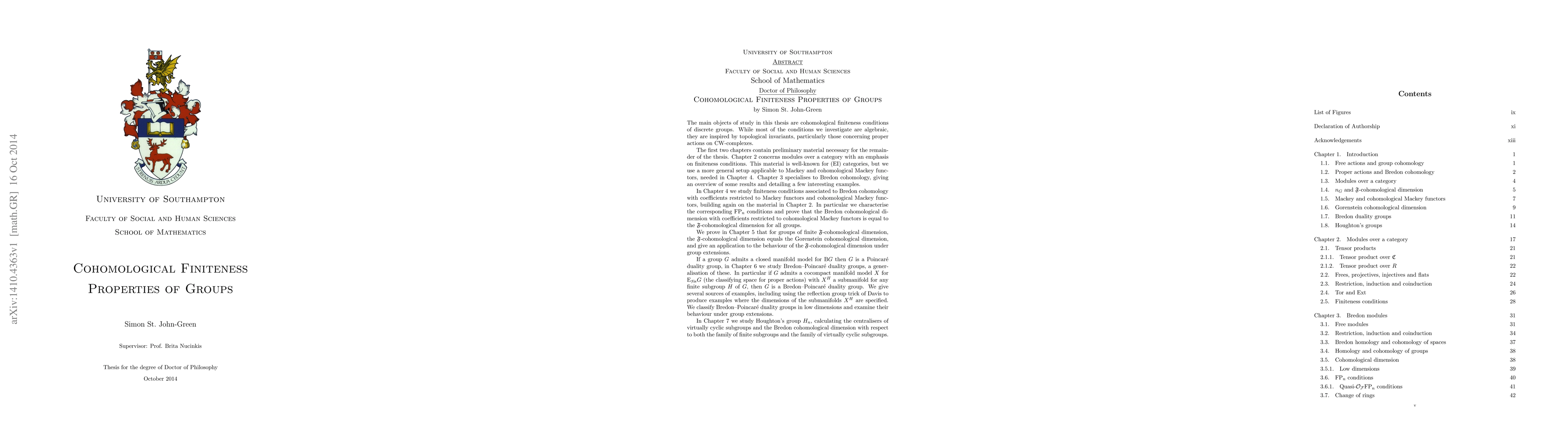 This thesis explores cohomological finiteness properties of infinite discrete groups, focusing on conditions that relate to the finiteness of cohomology groups. The research builds on previous works published in several arXiv preprints.