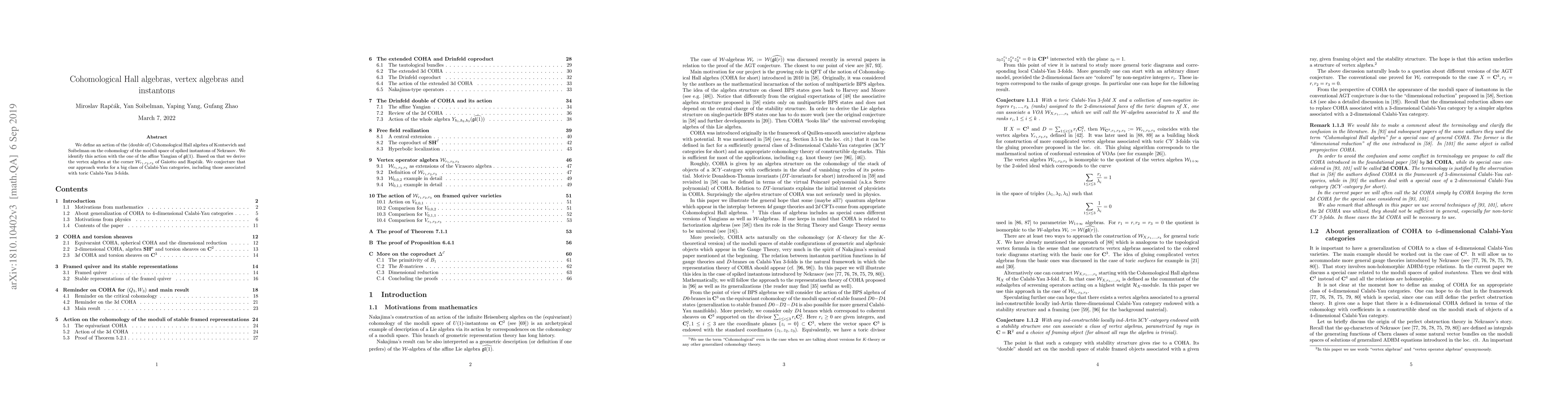 This work is significant as it bridges Cohomological Hall algebras, vertex algebras, and instanton theory, providing a new perspective on the underlying structures of these mathematical objects. It has potential implications in understanding moduli spaces of instantons and their cohomology through the lens of CHA and Yangian symmetry.