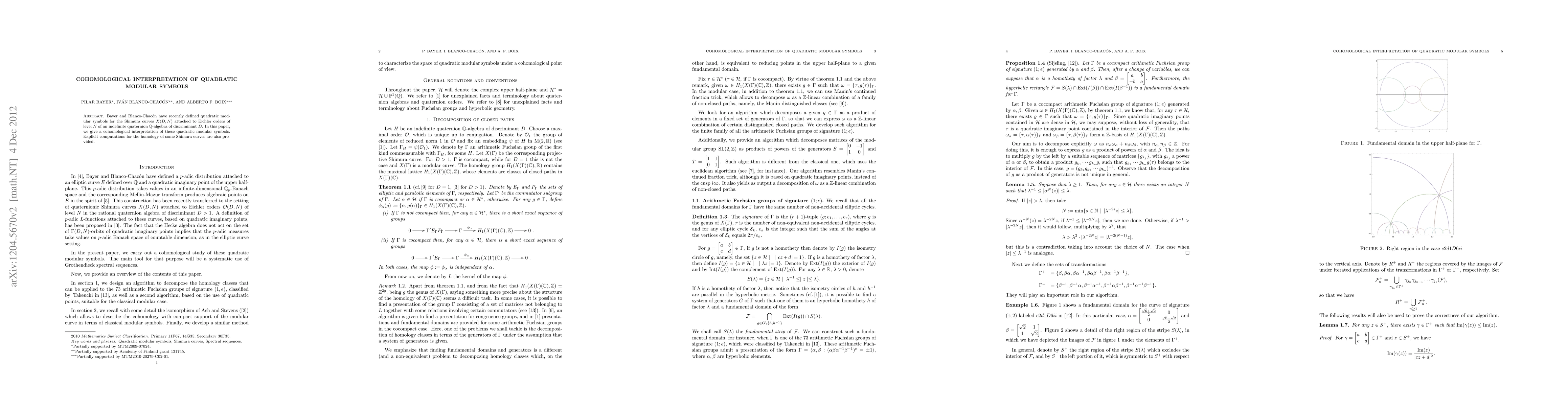 This paper offers a cohomological interpretation of Bayer and Blanco-Chacón's quadratic modular symbols related to Shimura curves, with explicit computations on the homology of certain Shimura curves also presented.